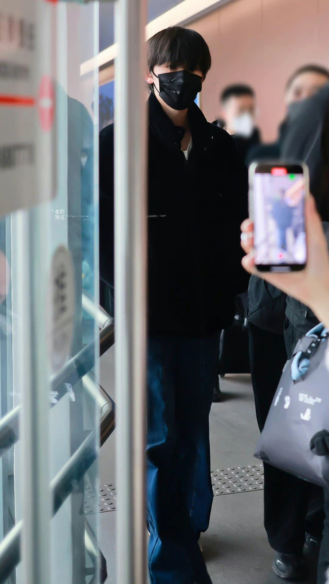 #宋亚轩黑色外套顺毛造型路透#宋亚轩最新出发路透,黑色羽绒服牛仔裤,今日顺毛的样子顺毛好乖 一只
