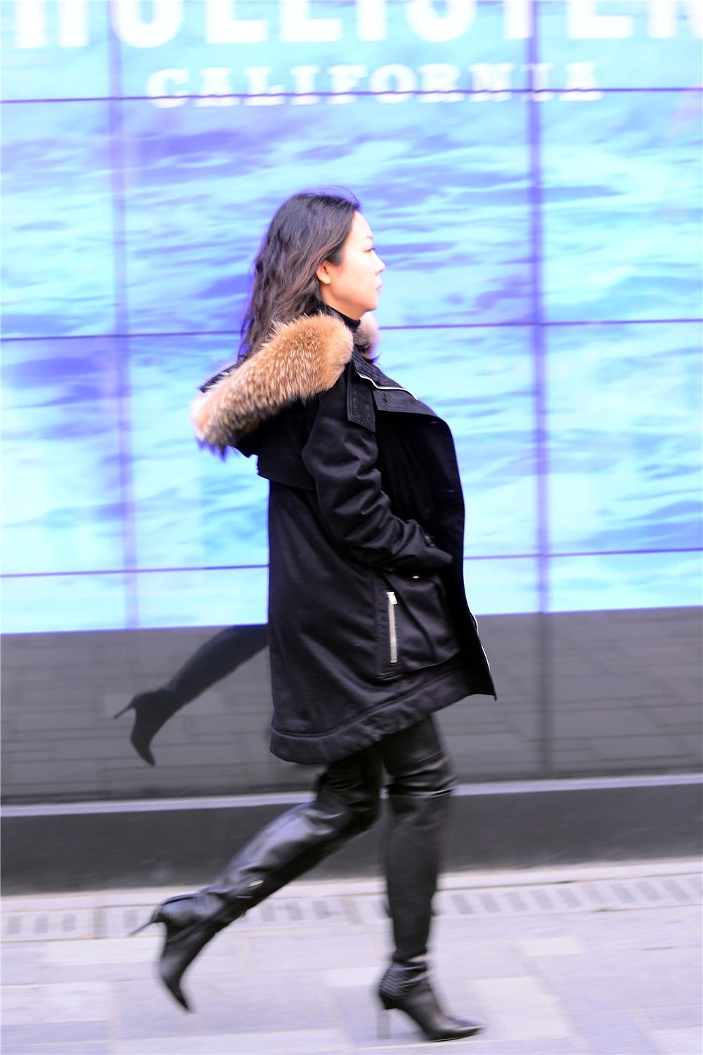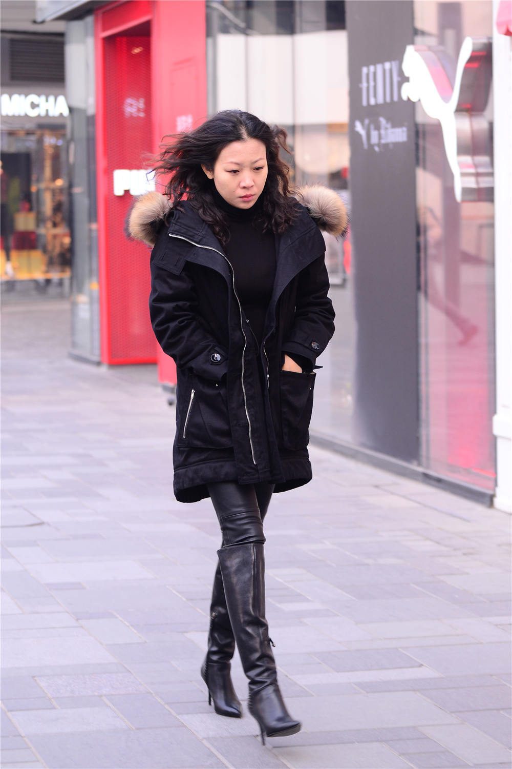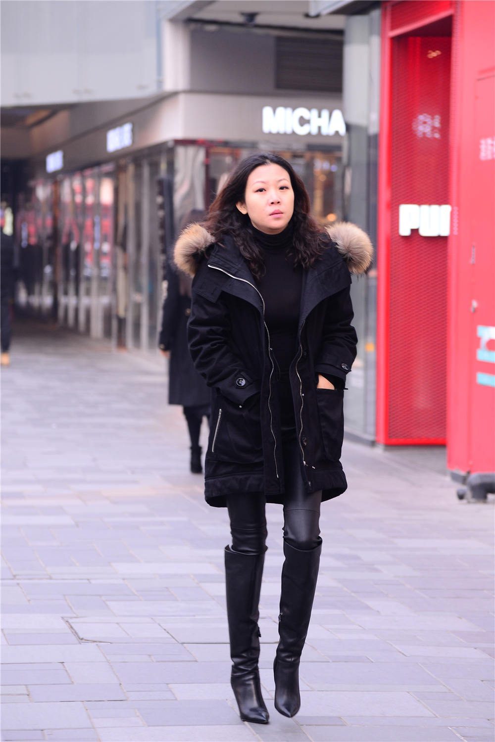 时尚美女了解什么风格更适合自己,也可以搭配出不一样的感觉,黑色的高领衬衣,起到了很好的点缀效果,也更加保暖一些,外面一件黑色的羽绒服,非常厚实的款式,中款的设计,保暖效果更好一些,如果你也喜欢搭配,可以尝试一下,前面的拉链没有拉起来,就是为了展示内搭,也穿出时尚优雅的感觉,后面的浅色皮草毛领,起到了点缀的效果,也看出美女非常注意保暖的穿搭。