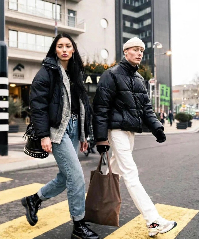 一组羽绒服穿搭街拍 #穿搭指南##时尚街拍#