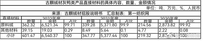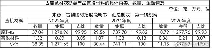 报告期内,古麒绒材的主要原材料为原料白鹅绒、原料白鸭绒、原料灰鹅绒和原料灰鸭绒,其中原料灰鹅绒采购数量相对较小。