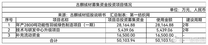 安徽古麒绒材股份有限公司(以下简称“古麒绒材”)日前披露深市主板IPO招股书,公司拟公开发行不超过5000万股,募资5.01亿元,分别投向年产2800吨功能性羽绒绿色制造项目(一期)、技术与研发中心升级项目以及补充流动资金。