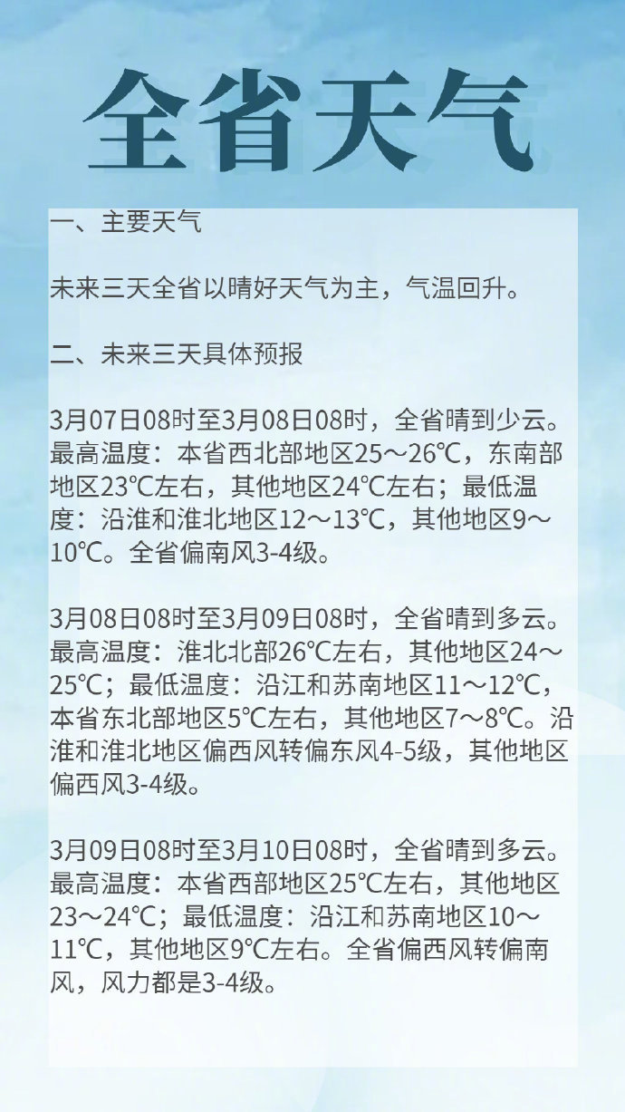 【南京已经入春,但羽绒服还要留一件 #你的羽绒服收起来了没#?】在偏南风和晴好天气“双引擎”的带动下,气温一路“狂飙”,6日江苏的最高气温超过了26℃。昨天#南京宣布入春#南京市气象台宣布了入春的消息:今年3月4日起,南京站的日平均气温稳定达到10℃以上。南京多年平均的入春时间是3月23日,今年入春时间偏早。但刚刚入春,但冷空气仍不甘心放弃的,在本周末有一次“冷到发紫”的较强冷空气活动,羽绒服还要留一件在身边。(扬子晚报/紫牛新闻记者 于丹丹)