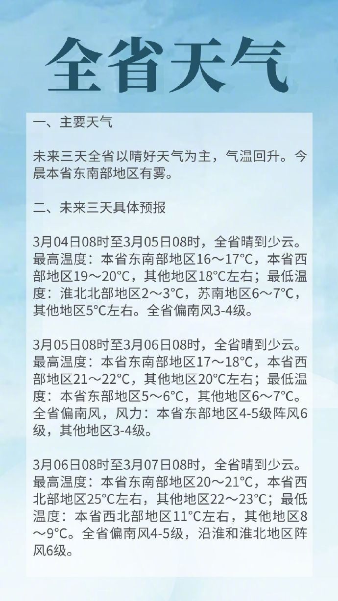 【江苏:20℃+!气温大踏步回暖 早晚记得“春捂” #你的羽绒服收起来了没#?】未来一段时间江苏的天气仍主打“晴暖”,气温继续回升,周末南京的最高气温都是20℃+,春天的气息已扑面而来。6日江苏全省最高气温可达25℃左右。近期昼夜温差加大,还是要提醒大家早晚仍要注意“春捂”。(扬子晚报/紫牛新闻记者 于丹丹 @江苏气象 )