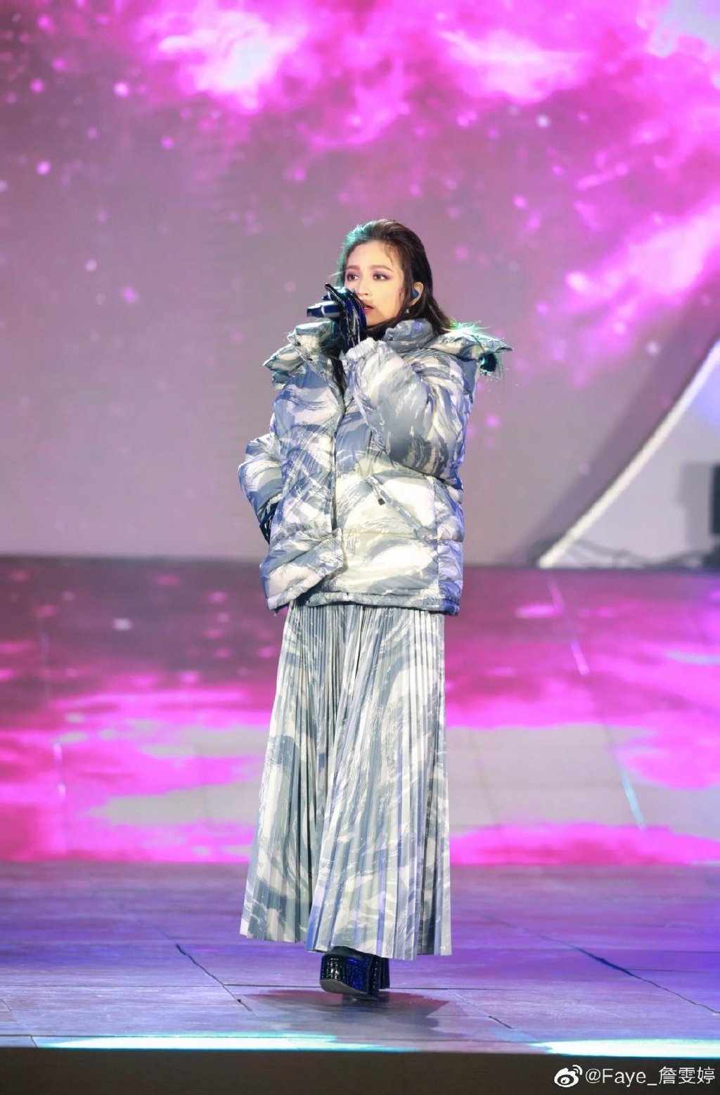 本以为陈慧琳穿羽绒服表演可能是绝唱,没想到今年Faye詹雯婷接班了。不久前,她在鄂尔多斯参加了元宵晚会,当地气温也是极低,詹雯婷同样套了一身超厚羽绒服,抽空就把手揣兜里,让粉丝们发现了她实在又可爱的一面。