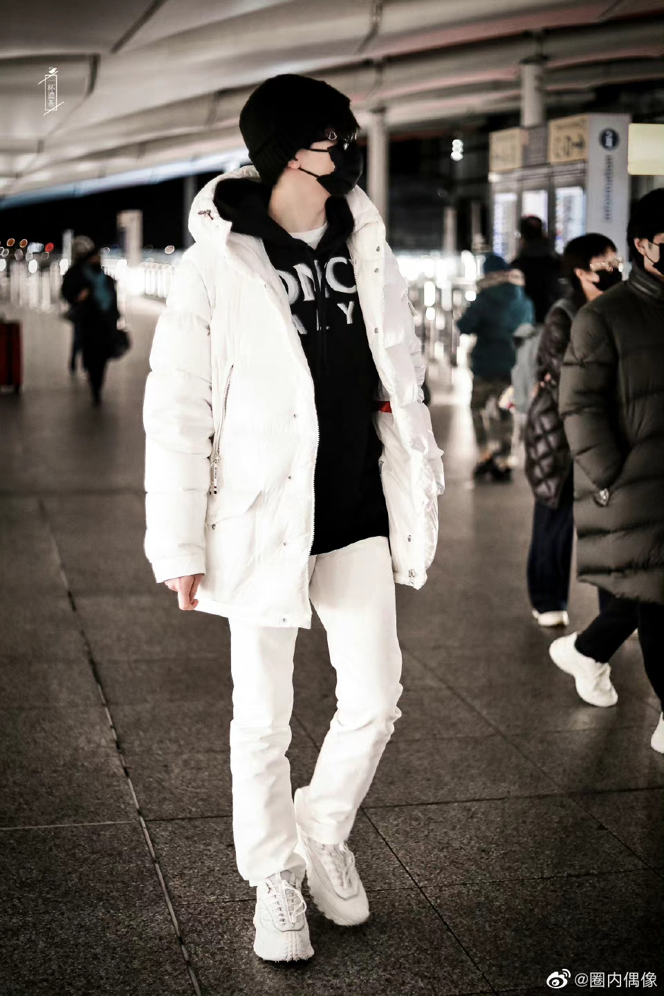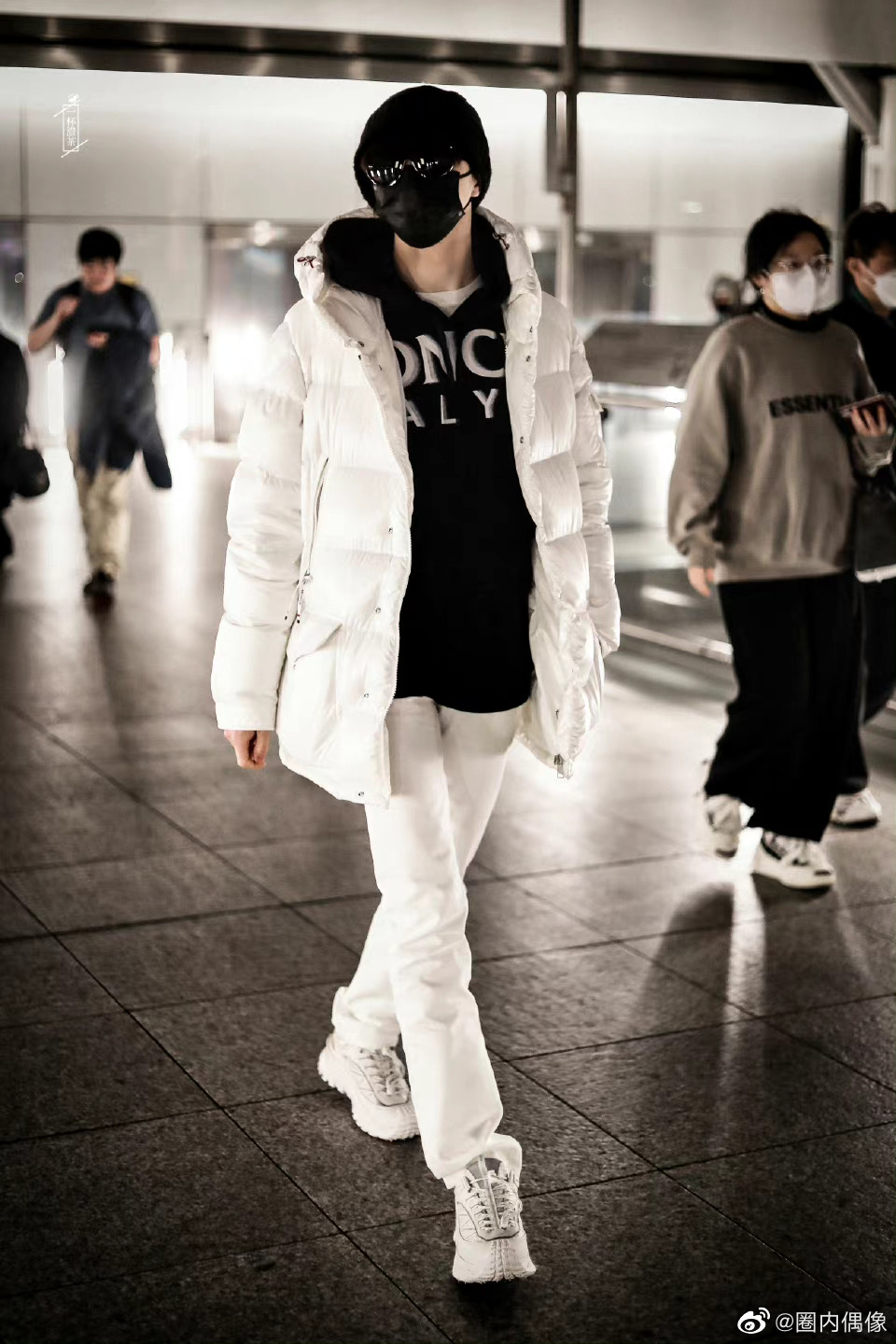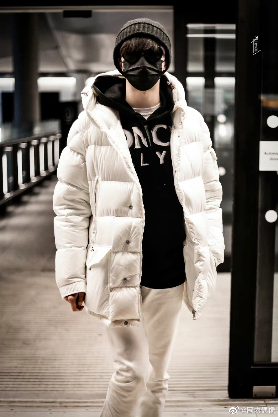 陈立农今日伦敦出发饭拍,针织帽、黑色卫衣、白色羽绒服造型,很暖和的出发了