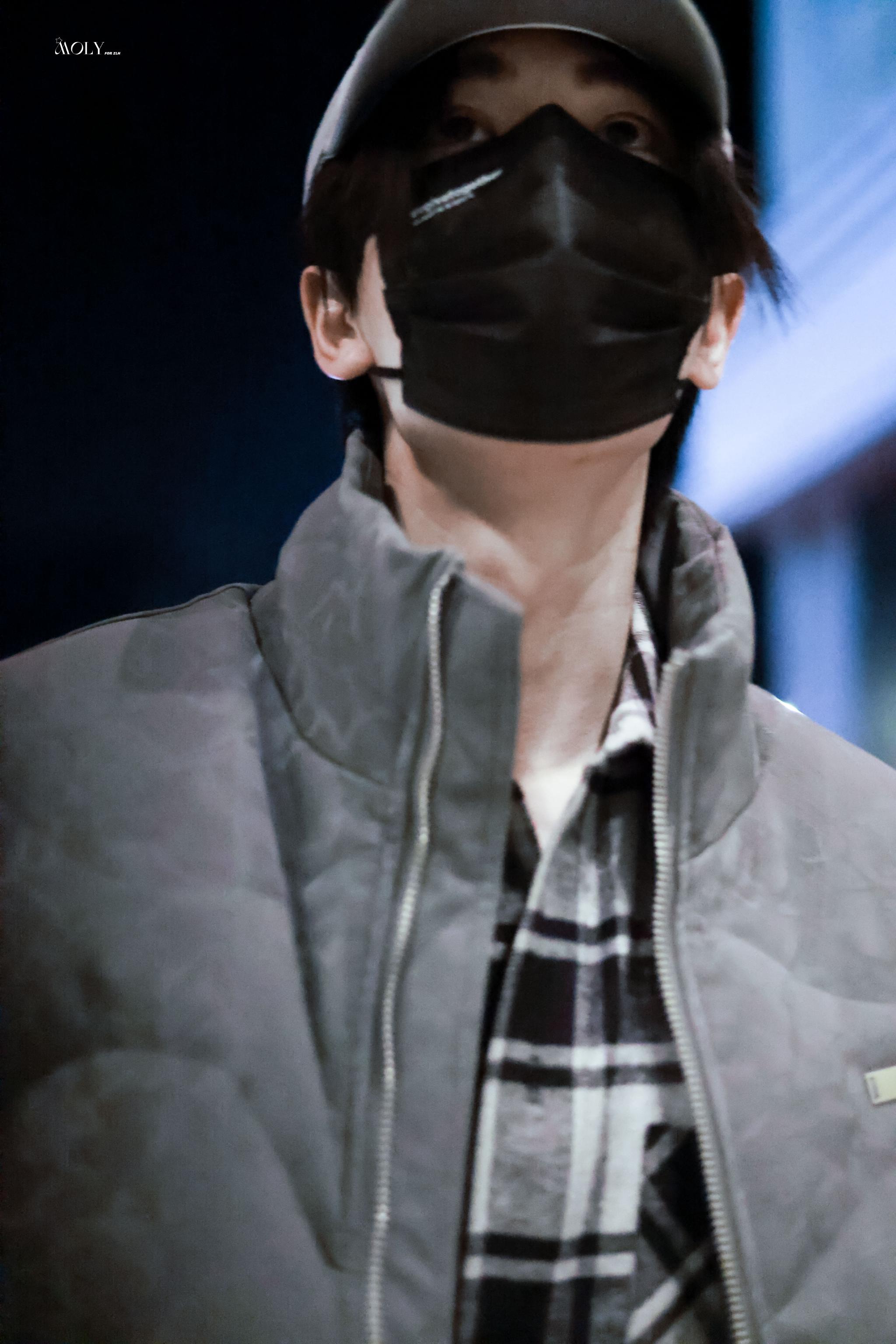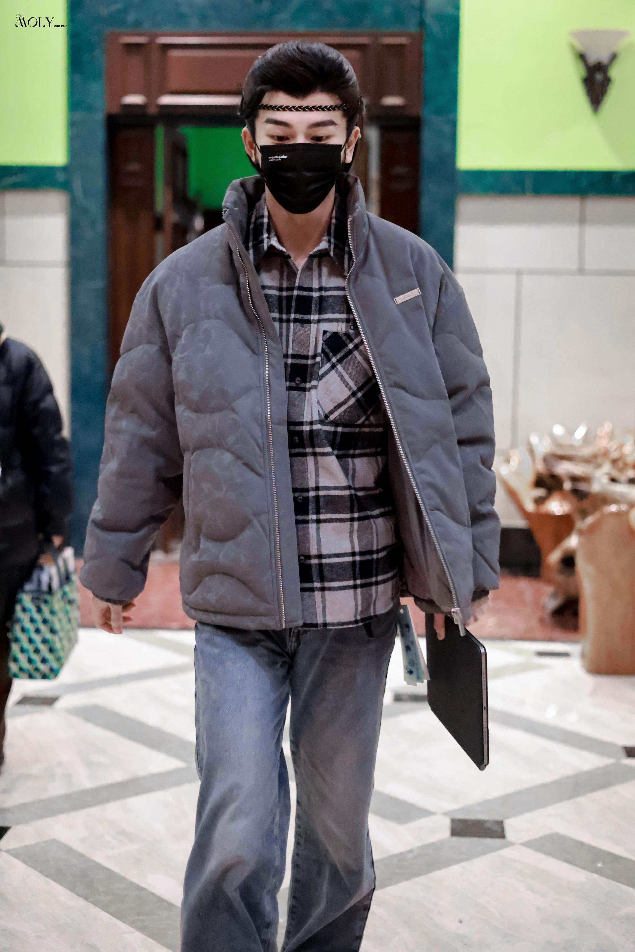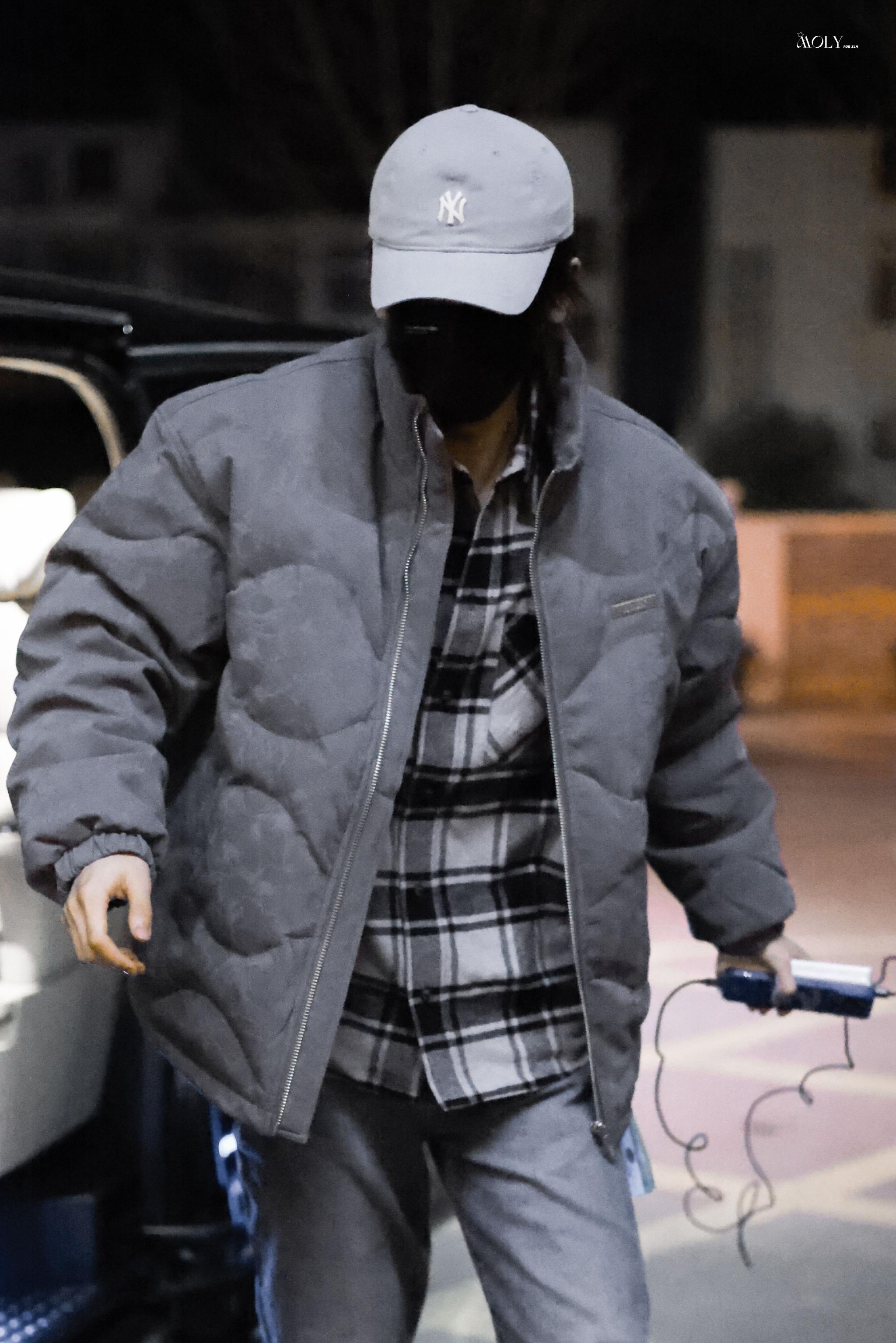 灰色羽绒服衬衫造型,深夜上班辛苦啦!期待宫子羽#张凌赫灰色羽绒服棒球帽上班路透##张凌赫的鲨鱼拖鞋#