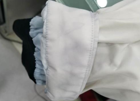 若想预防深色配布部分掉色(如上图所示的袖口部位),可以用塑料将其包裹缠绕,尽可能与水分、洗涤剂阻隔,避免接触。记得要扎牢固,防止机洗过程中脱落而造成掉色串染。