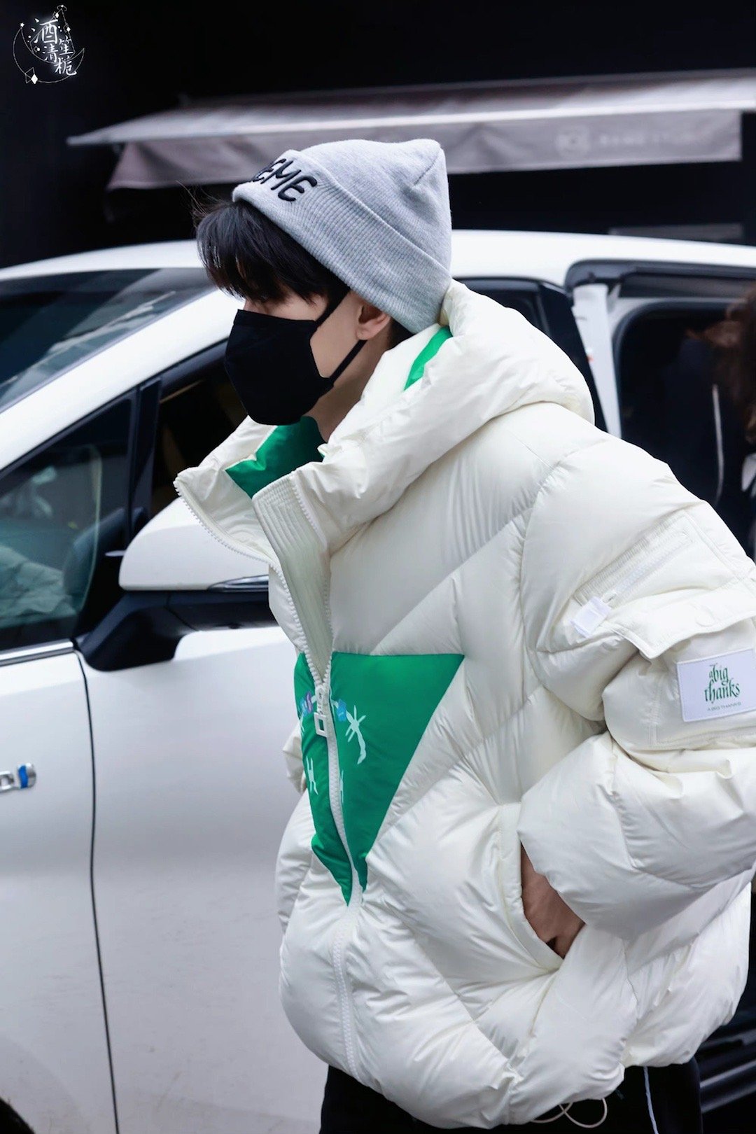 #任嘉伦白色羽绒服毛线帽上班路透##任嘉伦白色羽绒服毛线帽上班饭拍# 任嘉伦最新上班饭拍路透?白色羽绒服+毛线帽造型,保暖又舒适