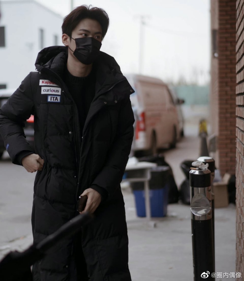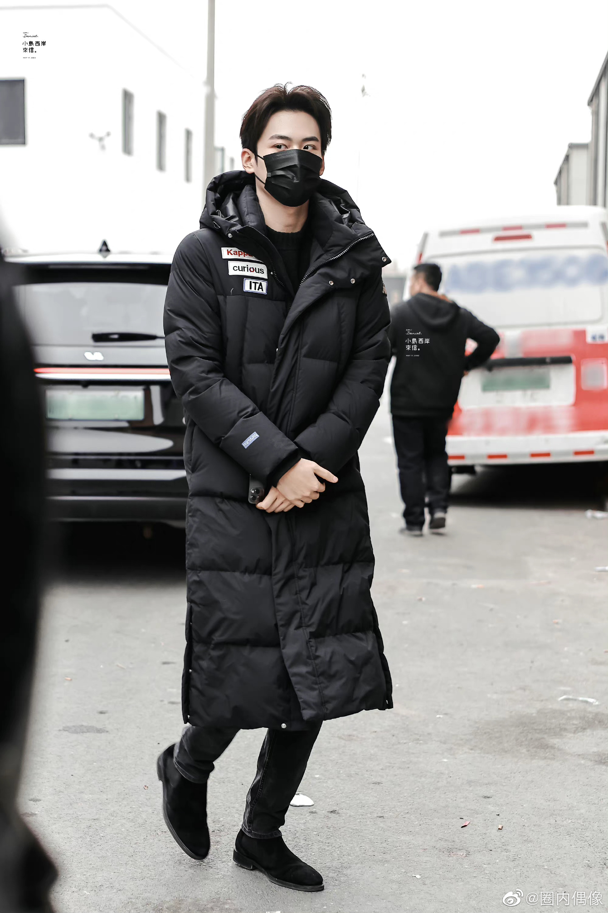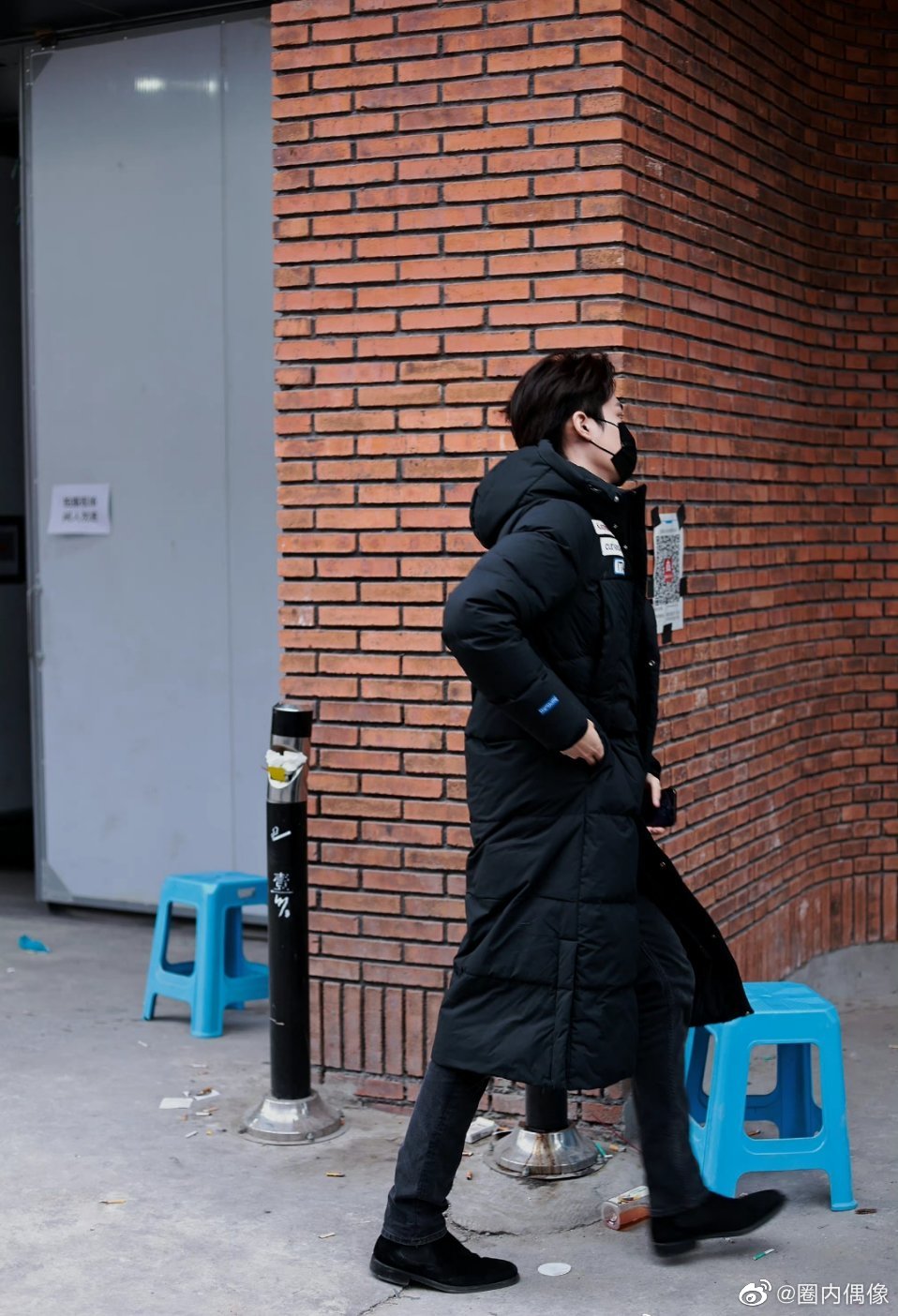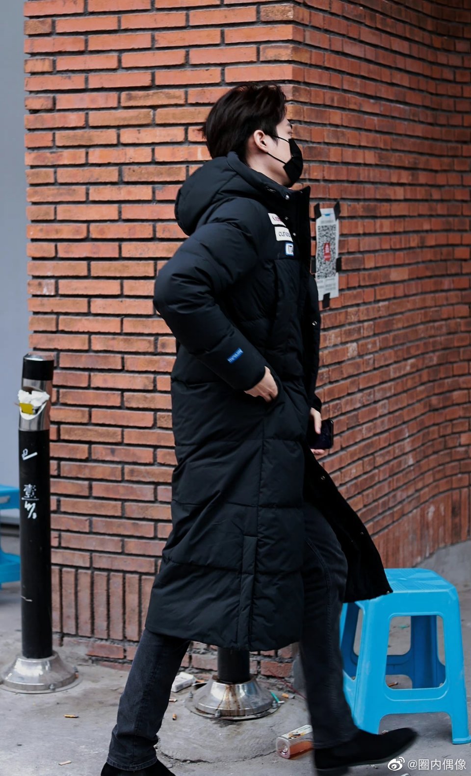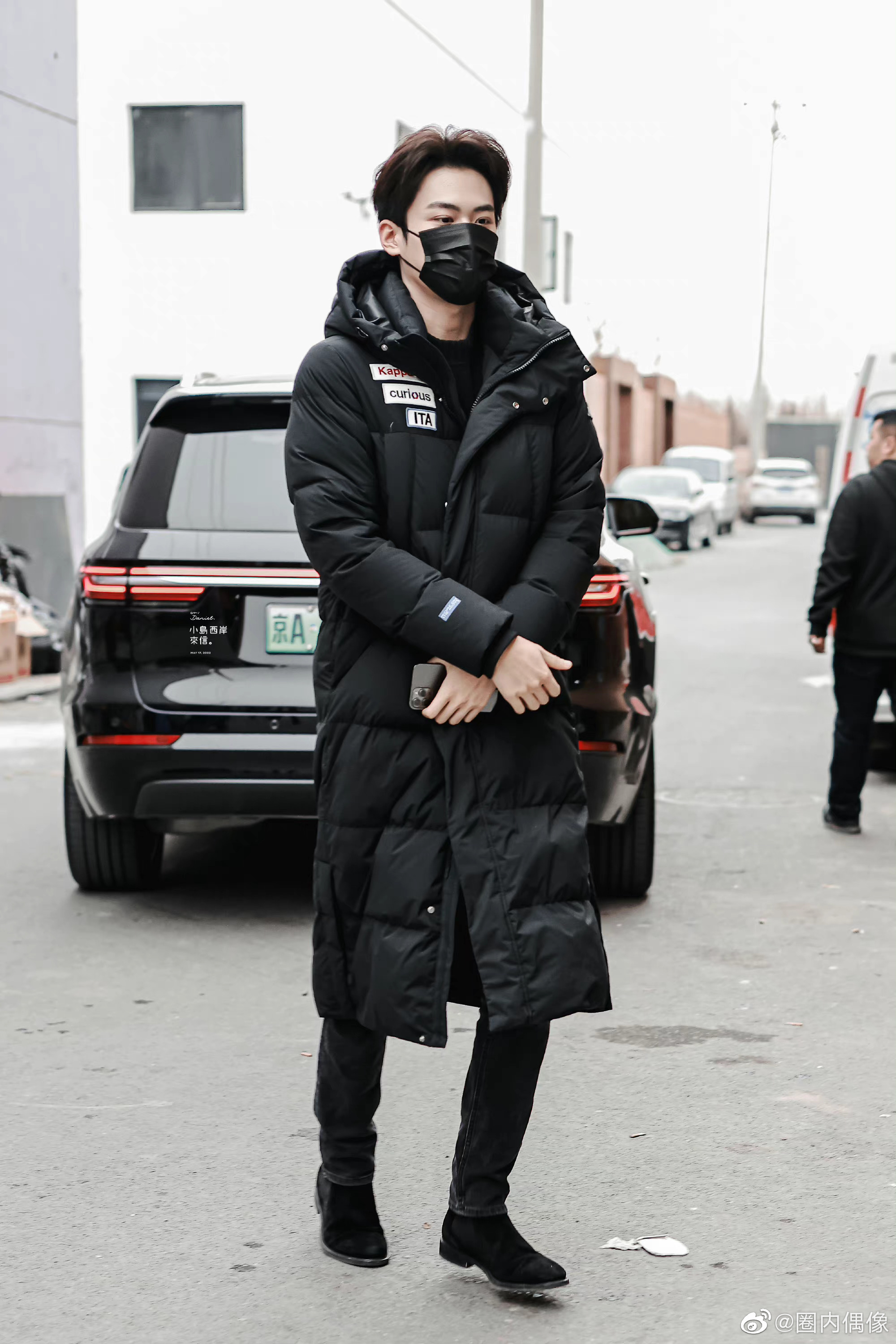 周柯宇今日转场路透,黑色长款羽绒服造型,今天也是氛围感帅哥