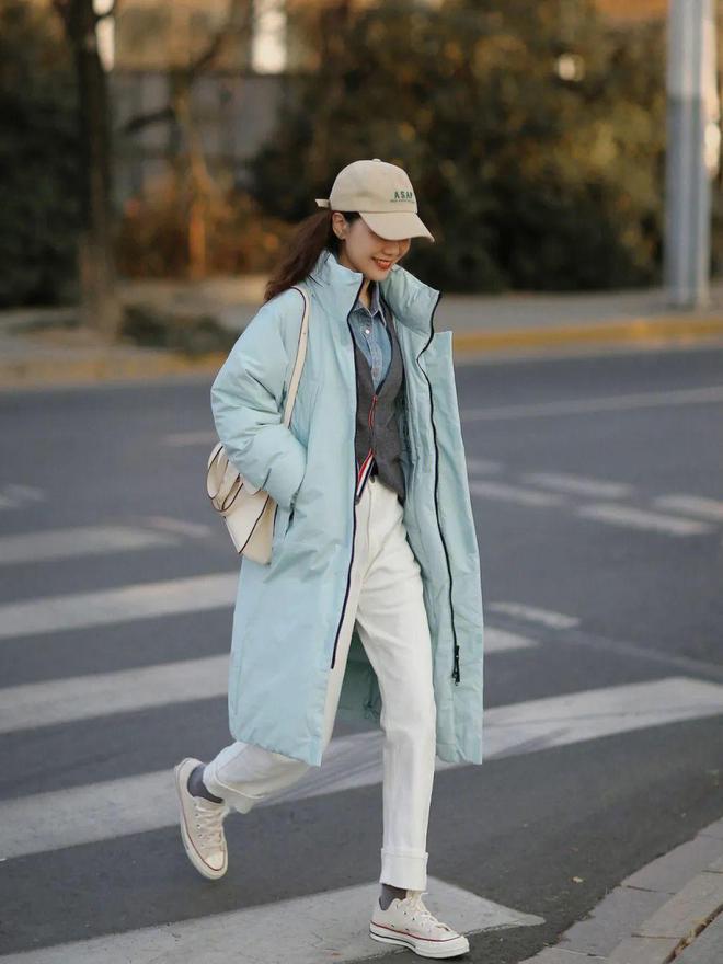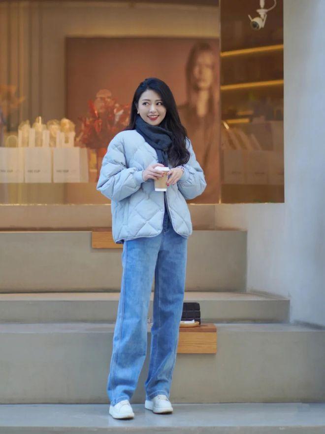 落落大方,好好生活,平淡的日子里也可以拥有许多小美好。淡蓝色的菱格羽绒服恰好是宝石蓝牛仔裤的过渡,沉闷的冬天里,这样的一抹颜色,如同清风徐来一样,只给人沁人心脾的感觉。▼