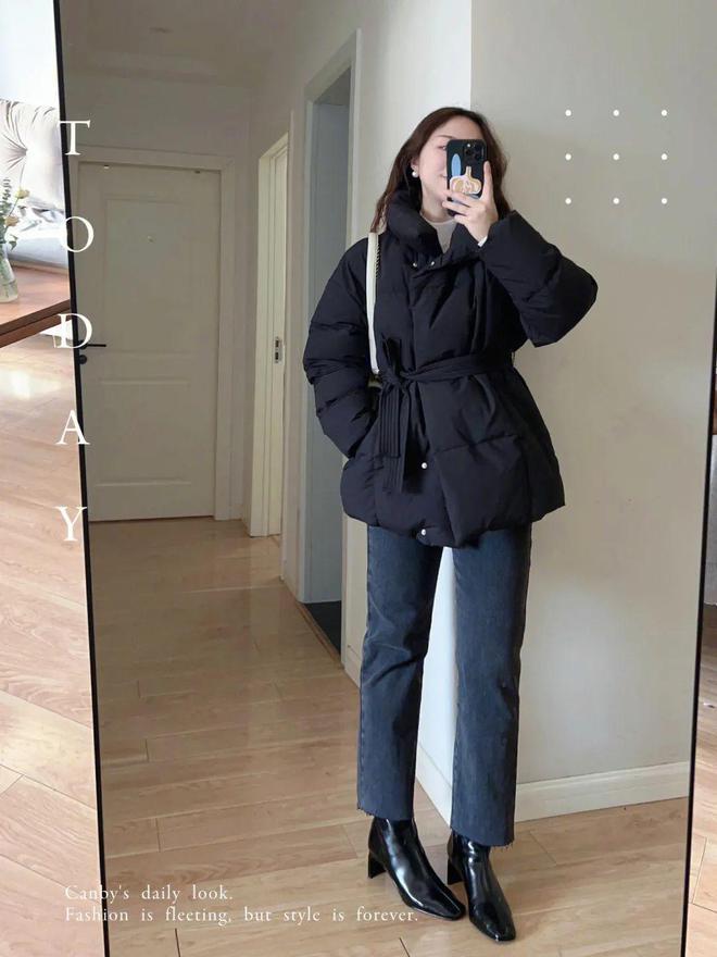 短款羽绒服+直筒裤