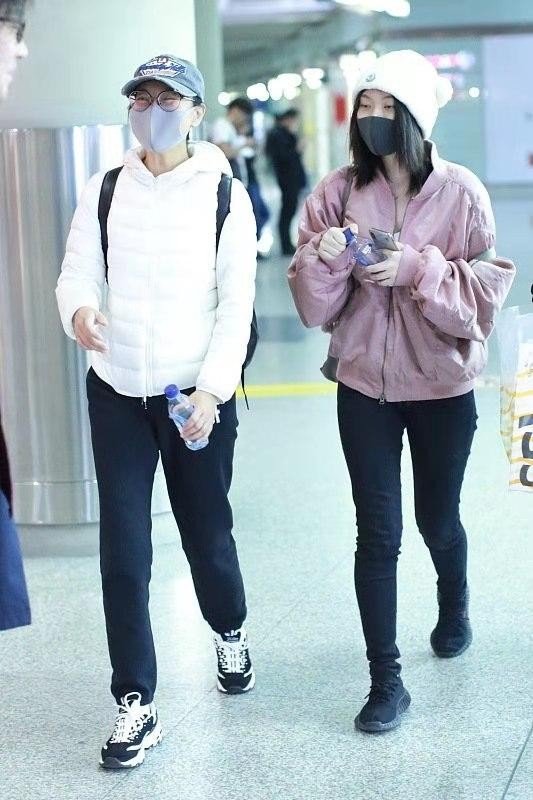 闫妮与女儿同框现身机场,虽然是母女两个,但是在外人看上去就像是姐妹两个一样,休闲风的运动裤搭配上同样休闲风十足的运动鞋,最大限度的保证了穿搭上的舒适度,同时还可以在一定程度上穿出减龄的效果。