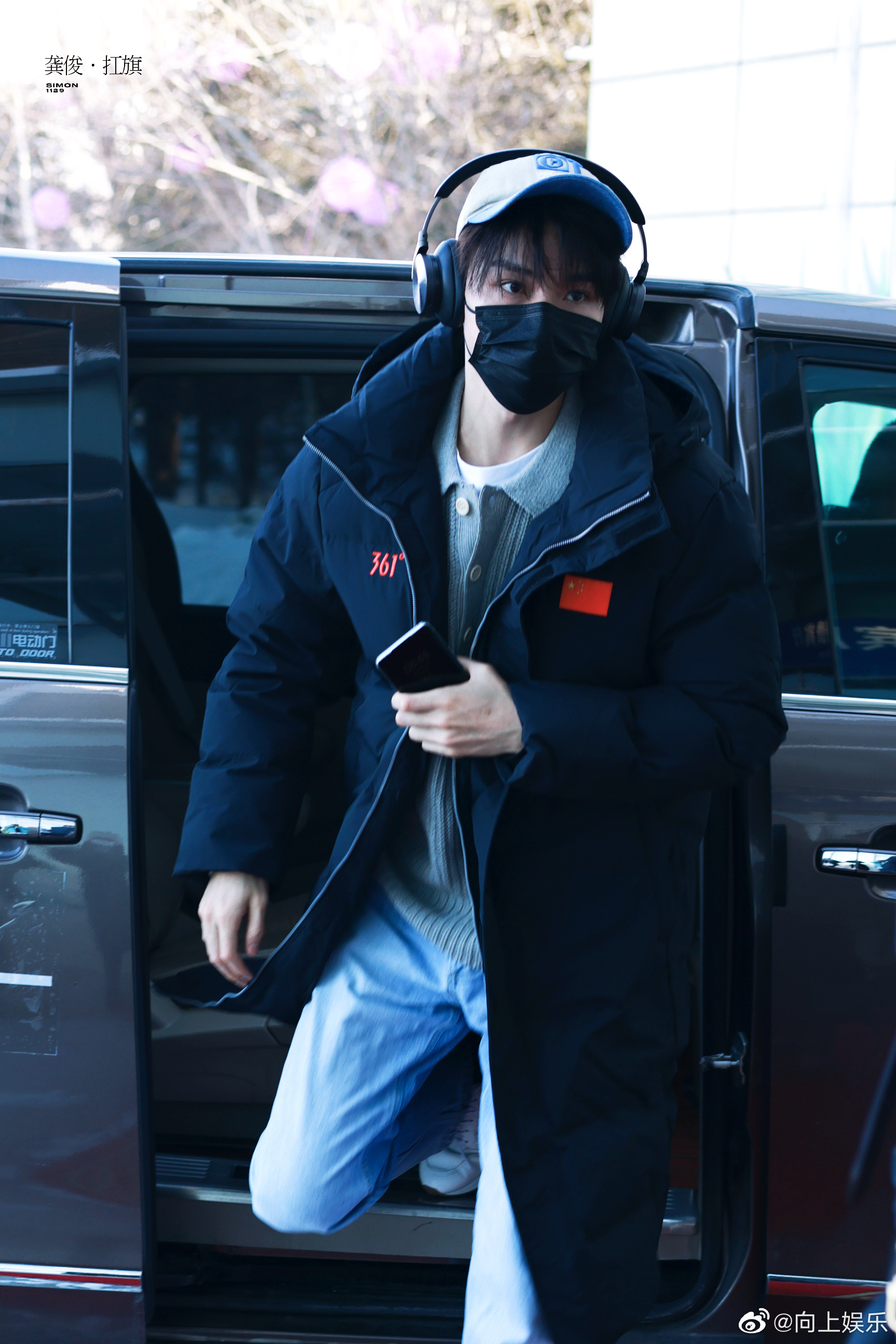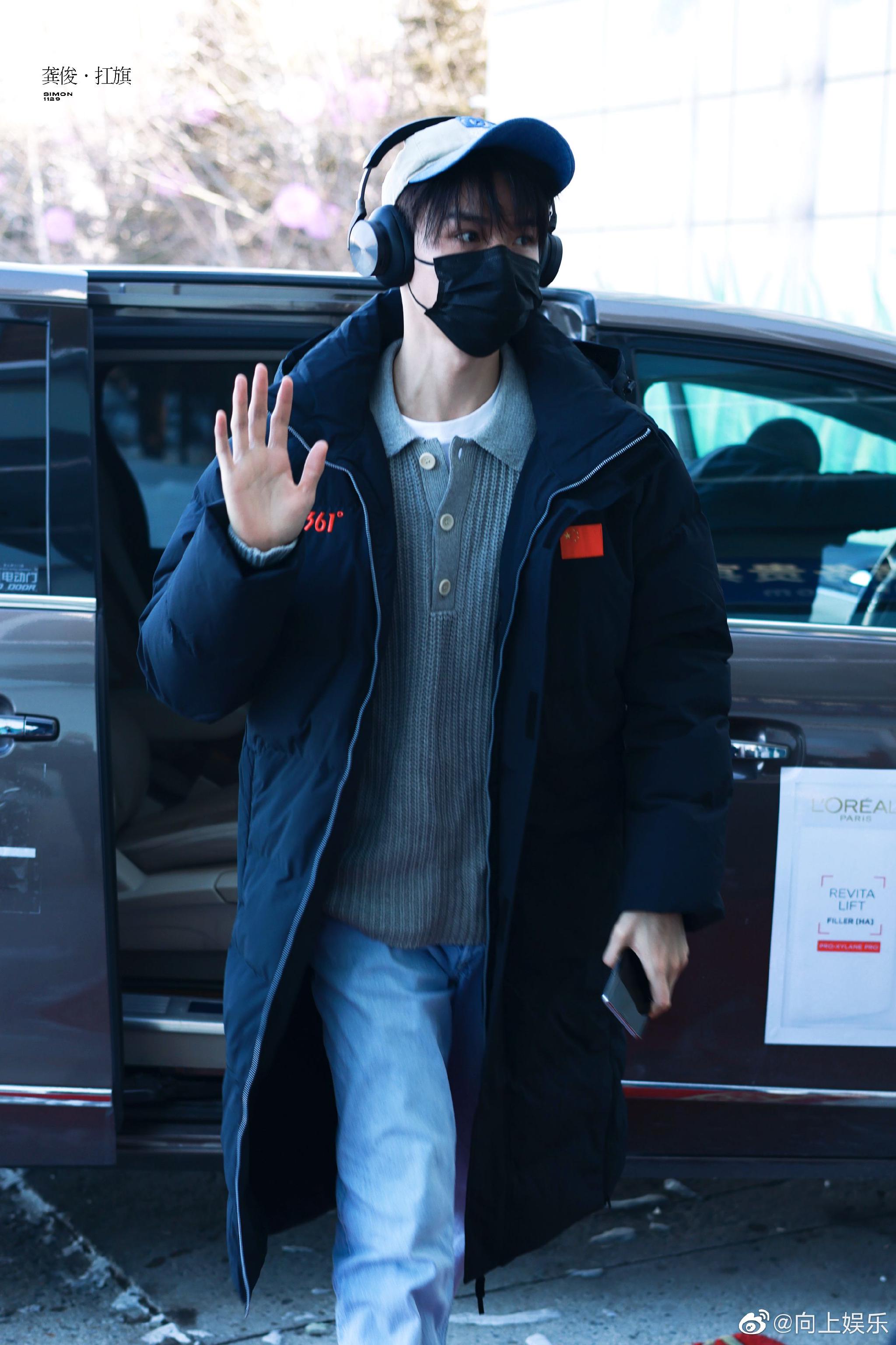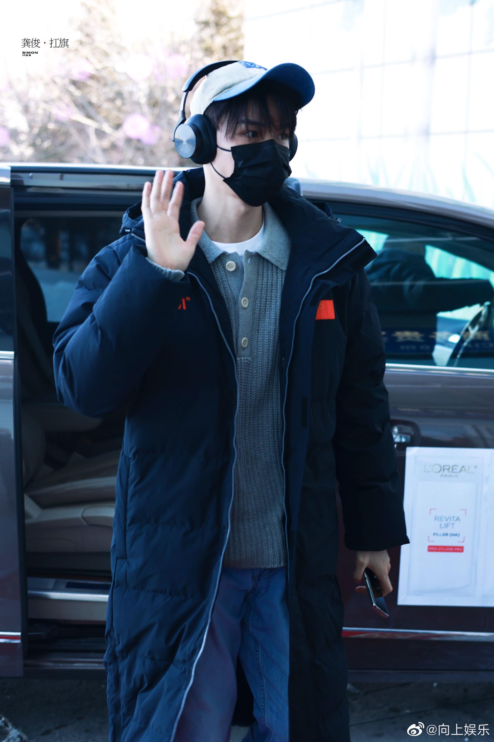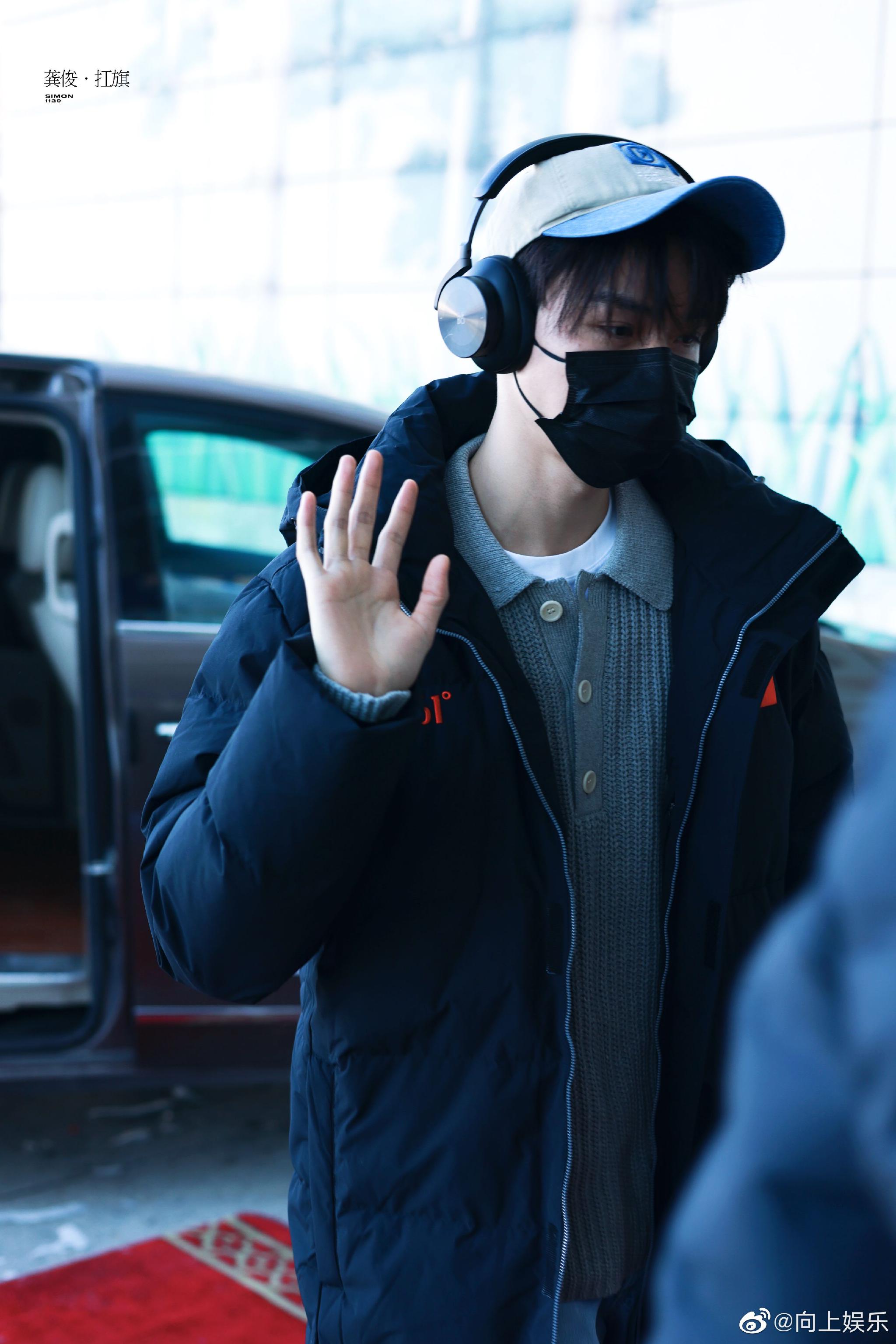 #龚俊蓝色毛衣造型机场出发饭拍#
