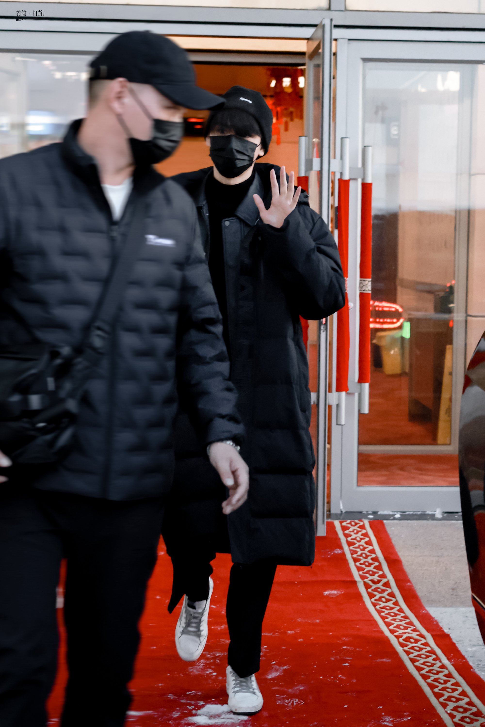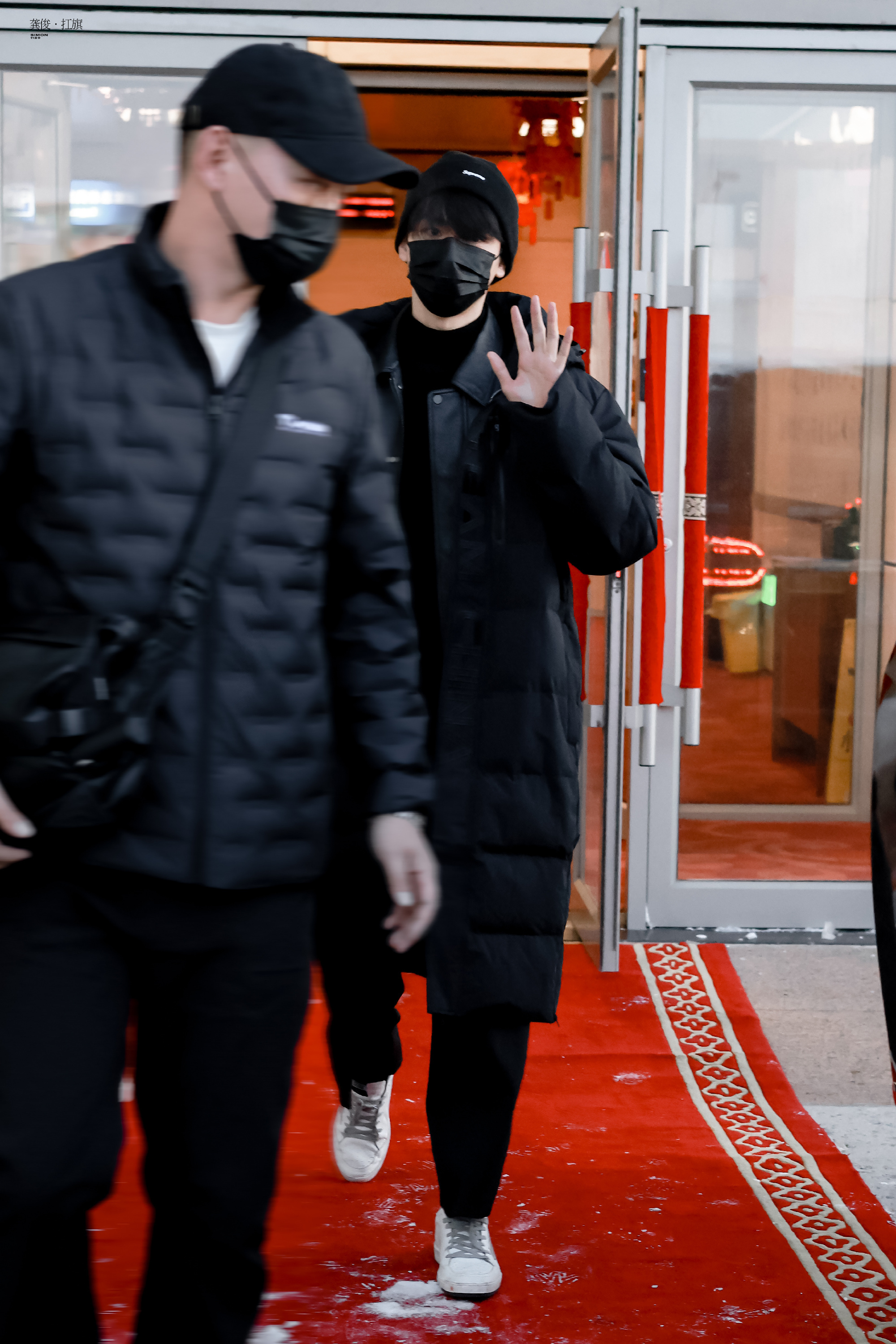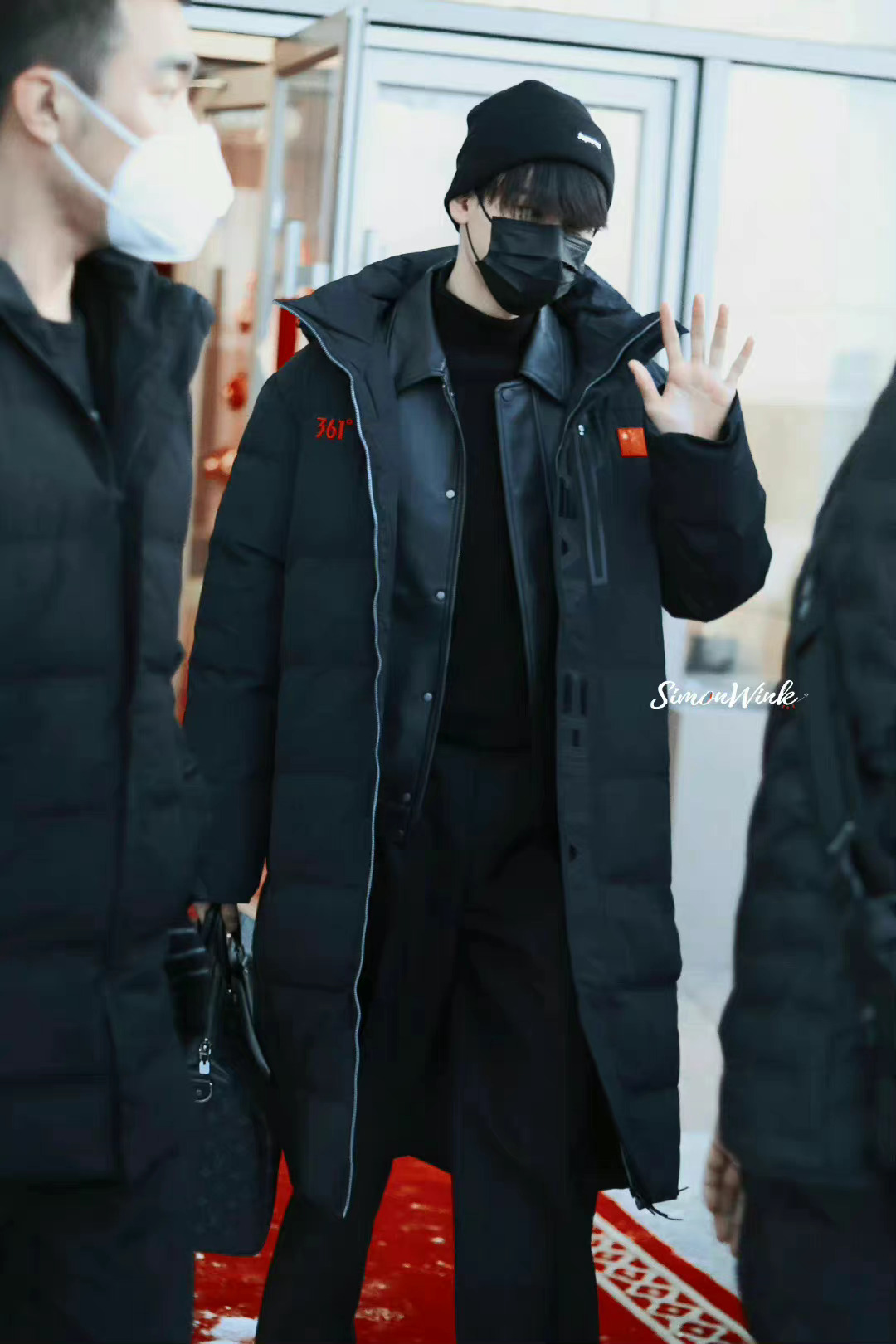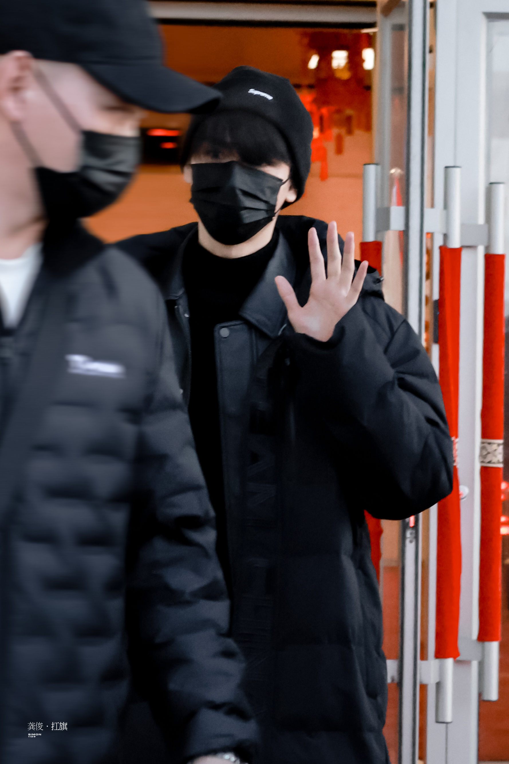 #龚俊黑色羽绒服毛线帽机场饭拍#