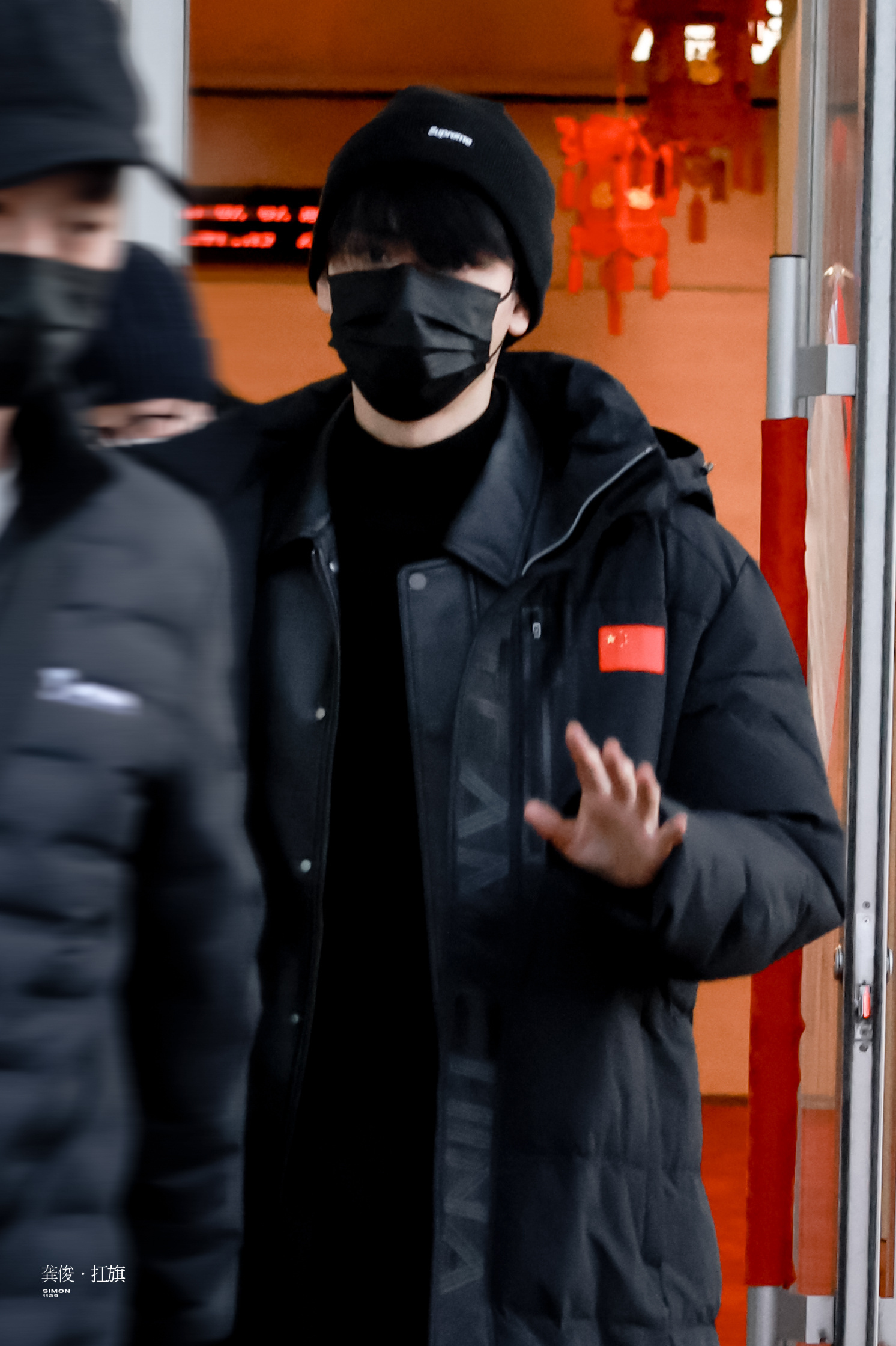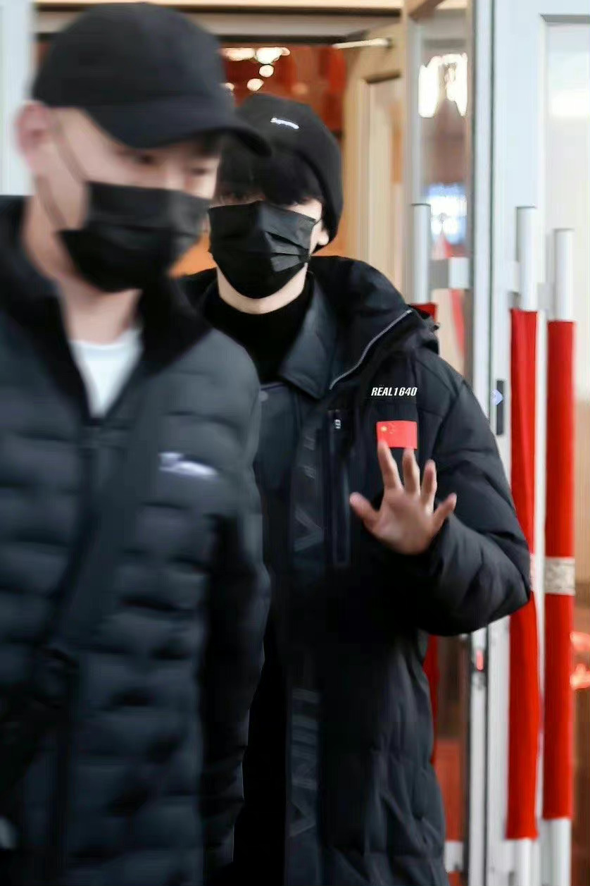 龚俊到达长白山路透?黑色羽绒服+毛线帽造型保暖又时尚、挥挥手打招呼好乖好有爱?