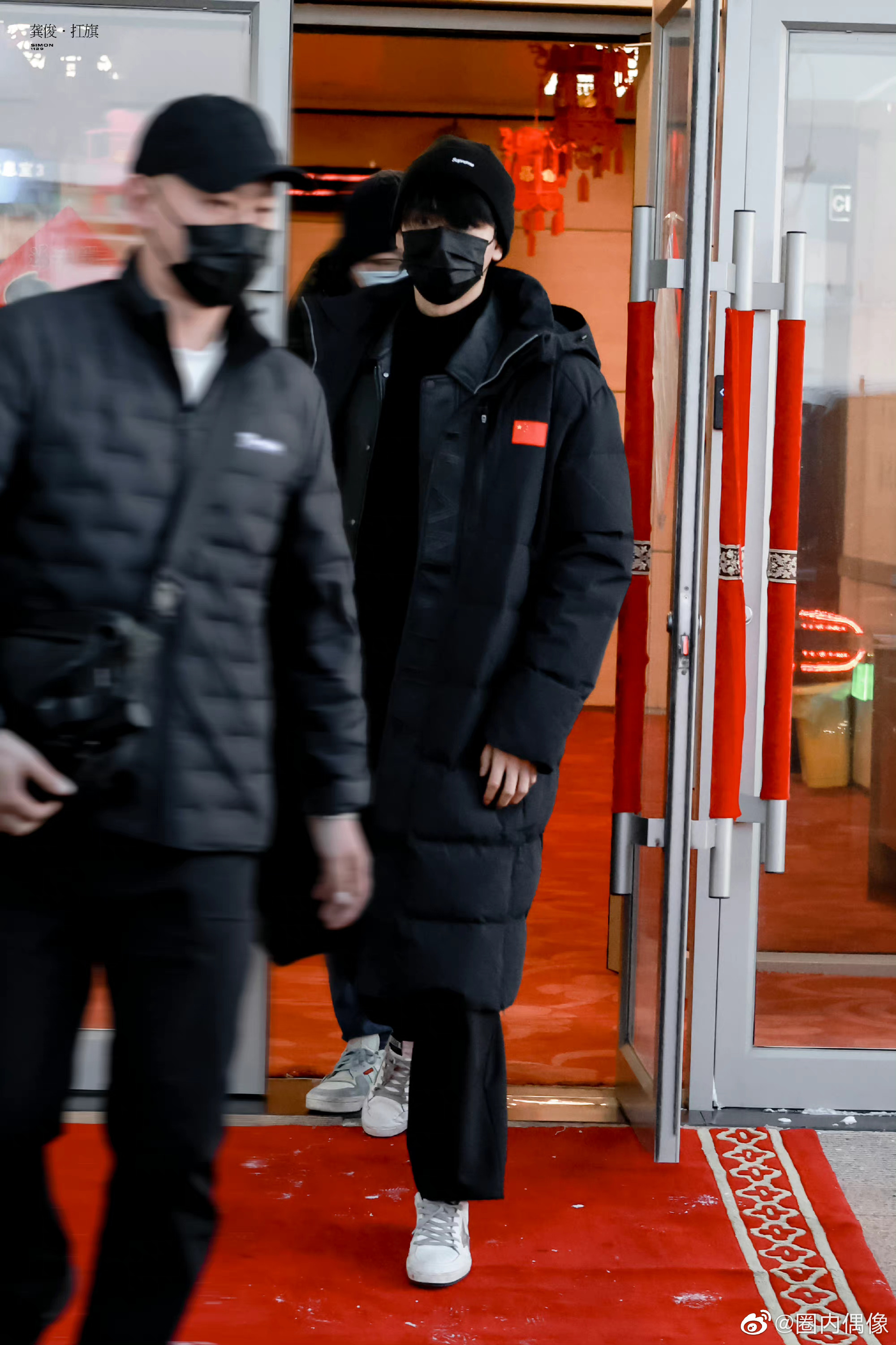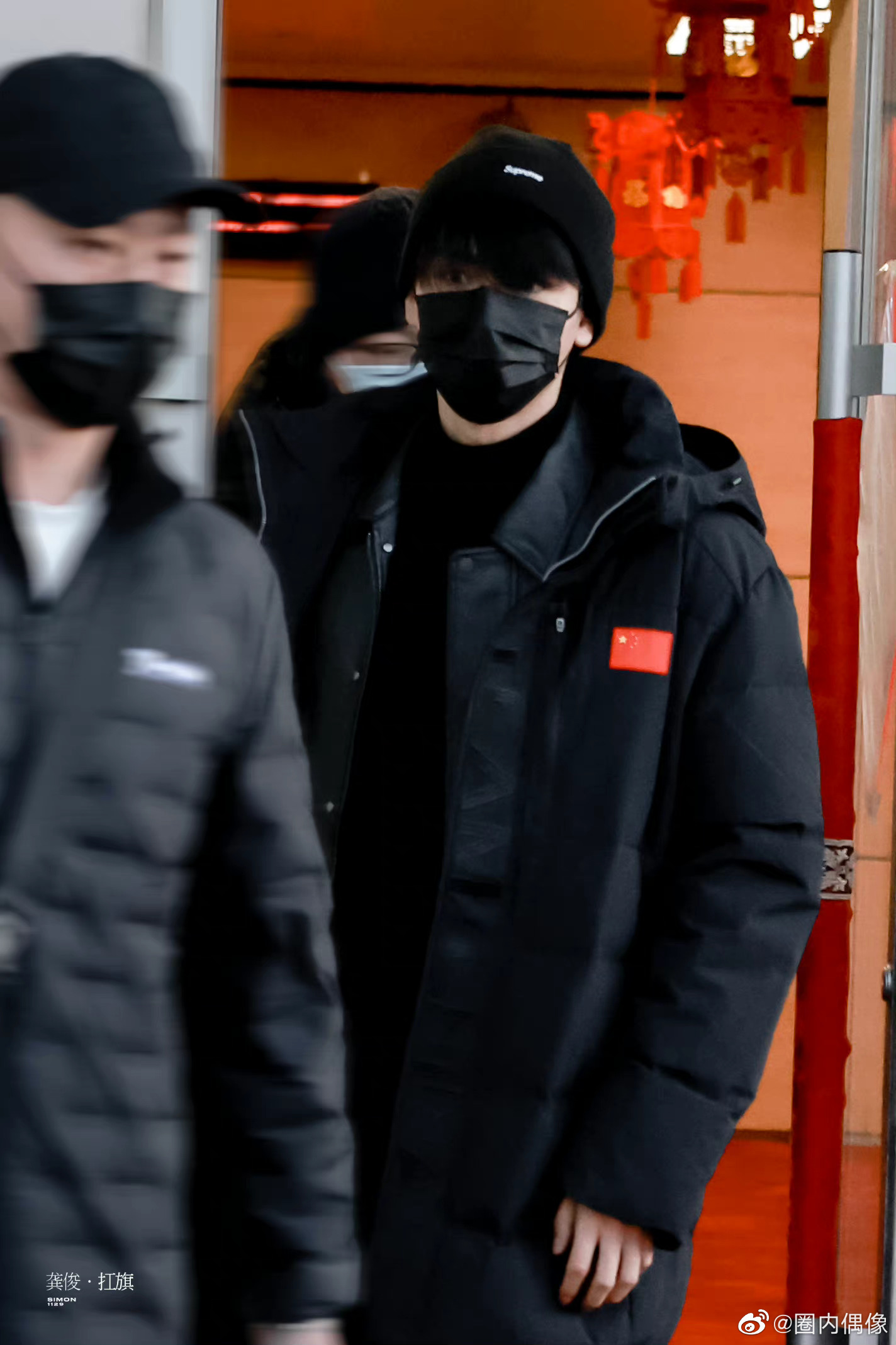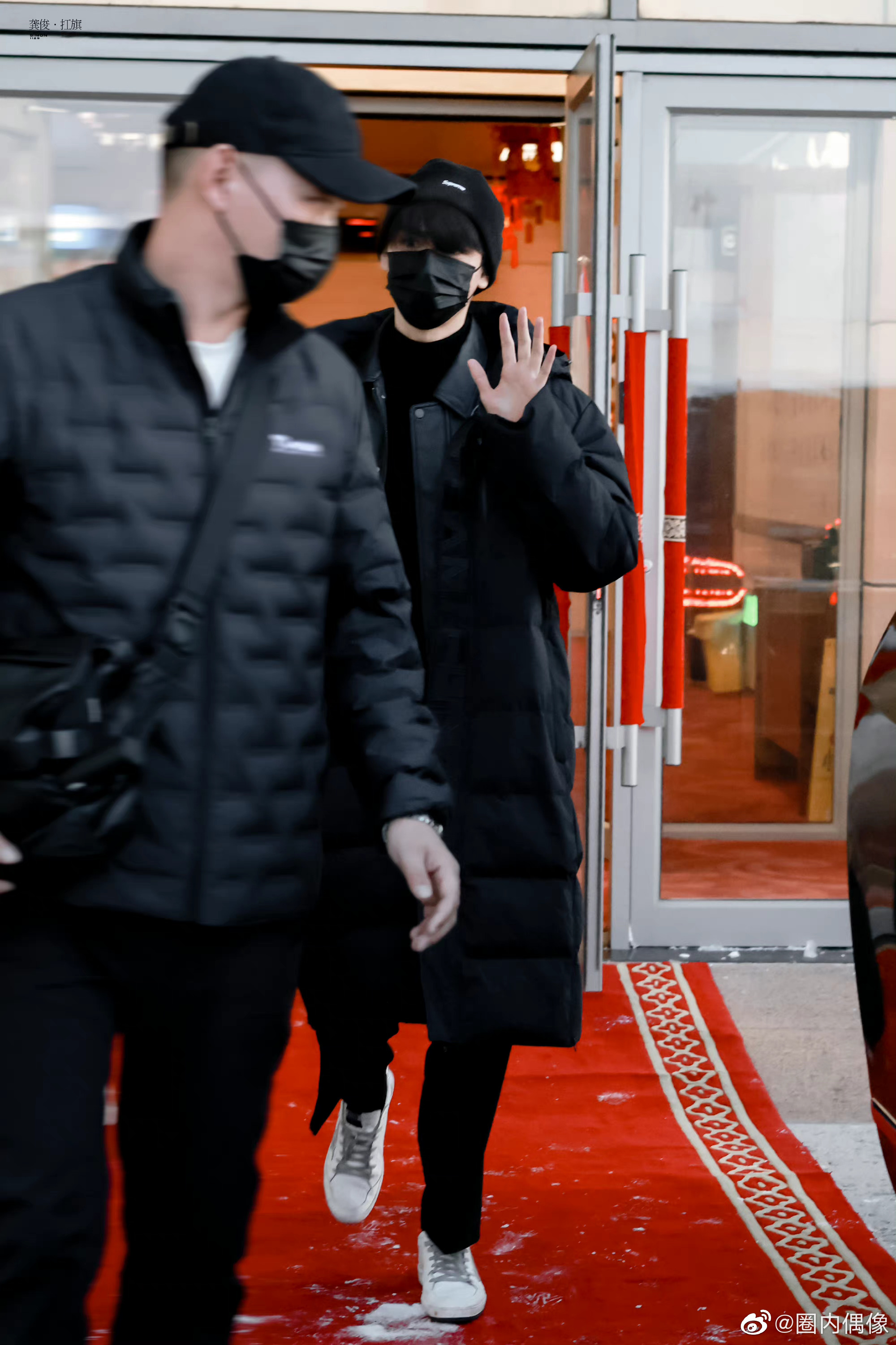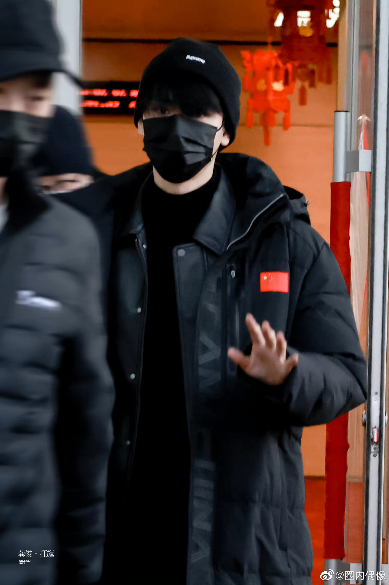 龚俊今日机场路透,黑色长款羽绒服针织帽造型很保暖,和大家挥手打招呼了