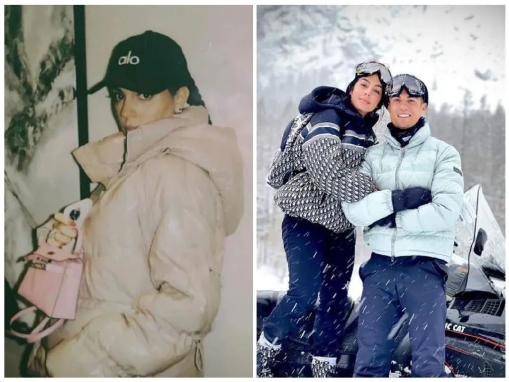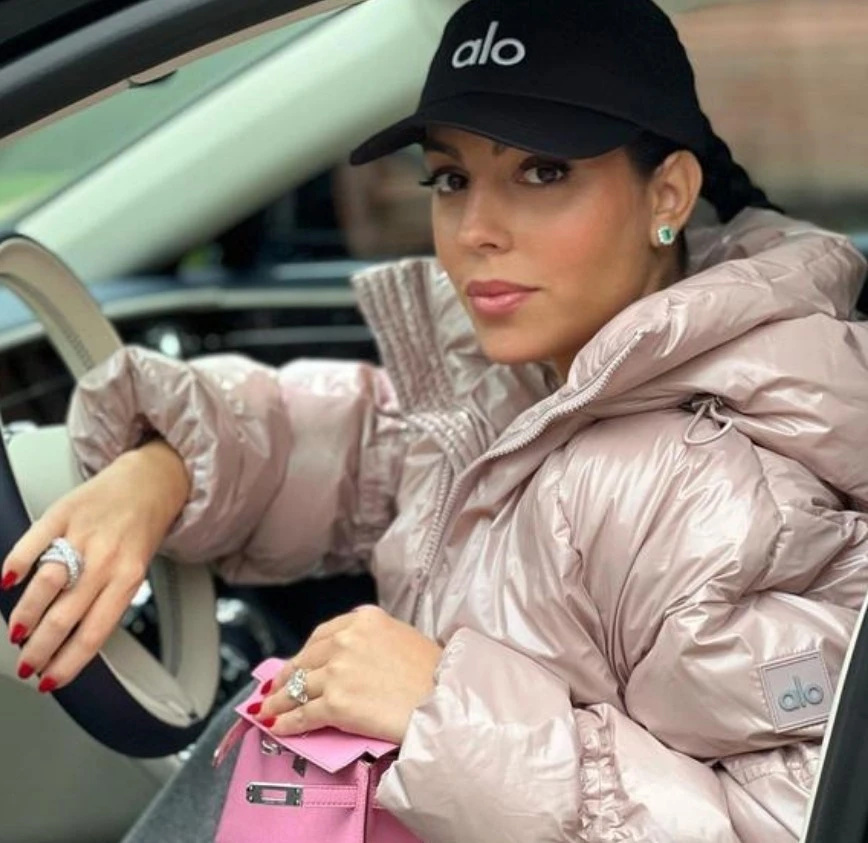 乔治娜就更狠了,虽然身上的Alo羽绒服不贵,耳畔的彩宝耳钉,手上的大钻戒和粉色爱马仕手袋简直富贵逼人,一如既往走的是堆叠风。