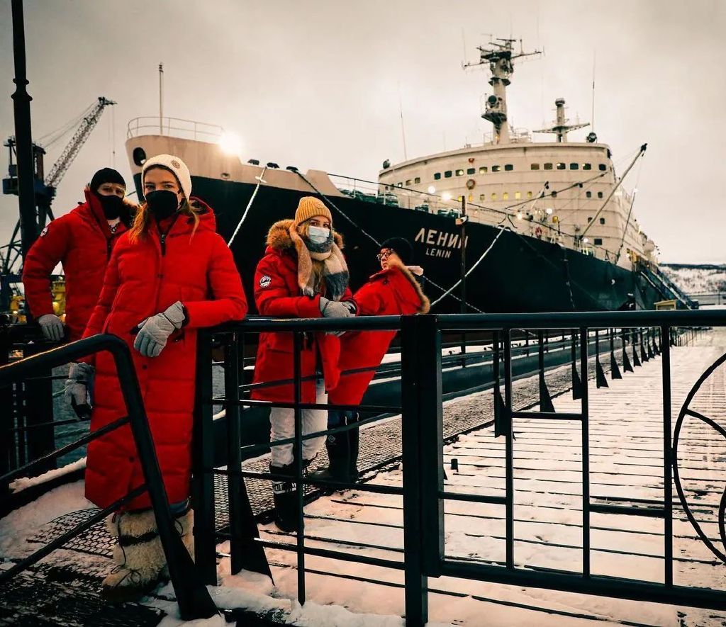 LV“太子妃”水果娜还组团穿起了红色拍游轮大片,冰天雪地中几抹红色格外亮眼,心情也跟着明媚起来。