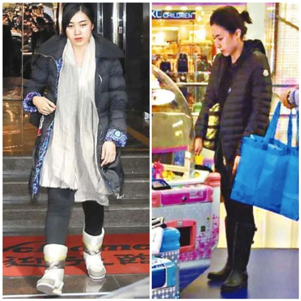 就算身材苗条匀称如郭晶晶,类似黑白款长羽绒,左边这件收腰款看起来也更显精气神。