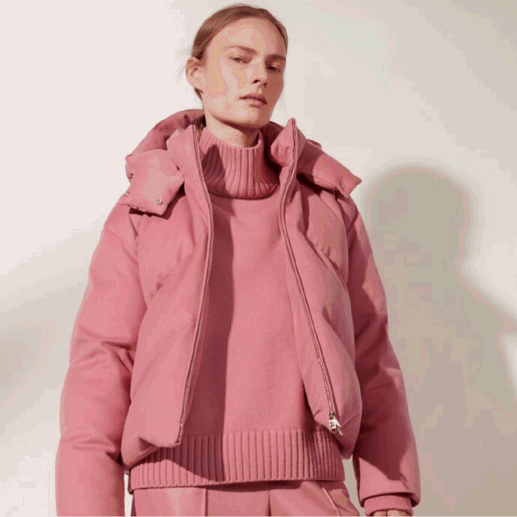 彩色系羽绒也是大热门,Moncler将柔柔嫩嫩的粉色和酷酷的飞行员夹克相结合,效果意外不错~