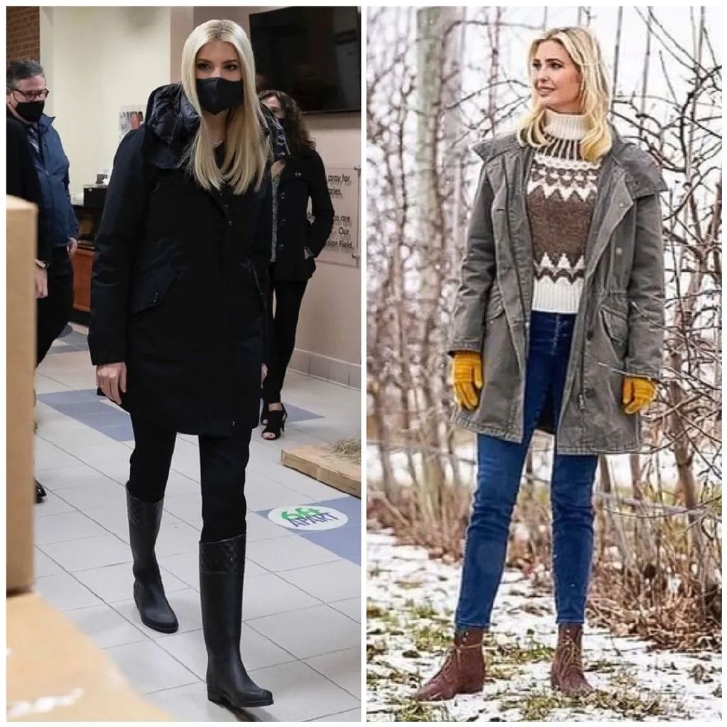 开头提到的伊万卡,更是派克大衣资深粉,这种腰间带抽绳的款式对身材更友好,搭配靴子英气十足,无论敞开穿还是扣上穿都很有范~