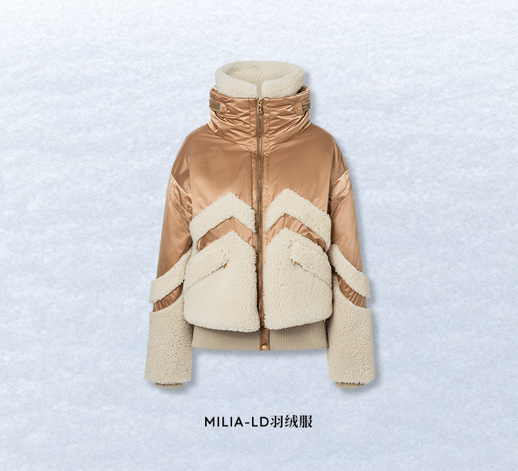 这款皮草滑雪羽绒服也超级贵气,缎面和皮草碰撞出不一样的火花↓