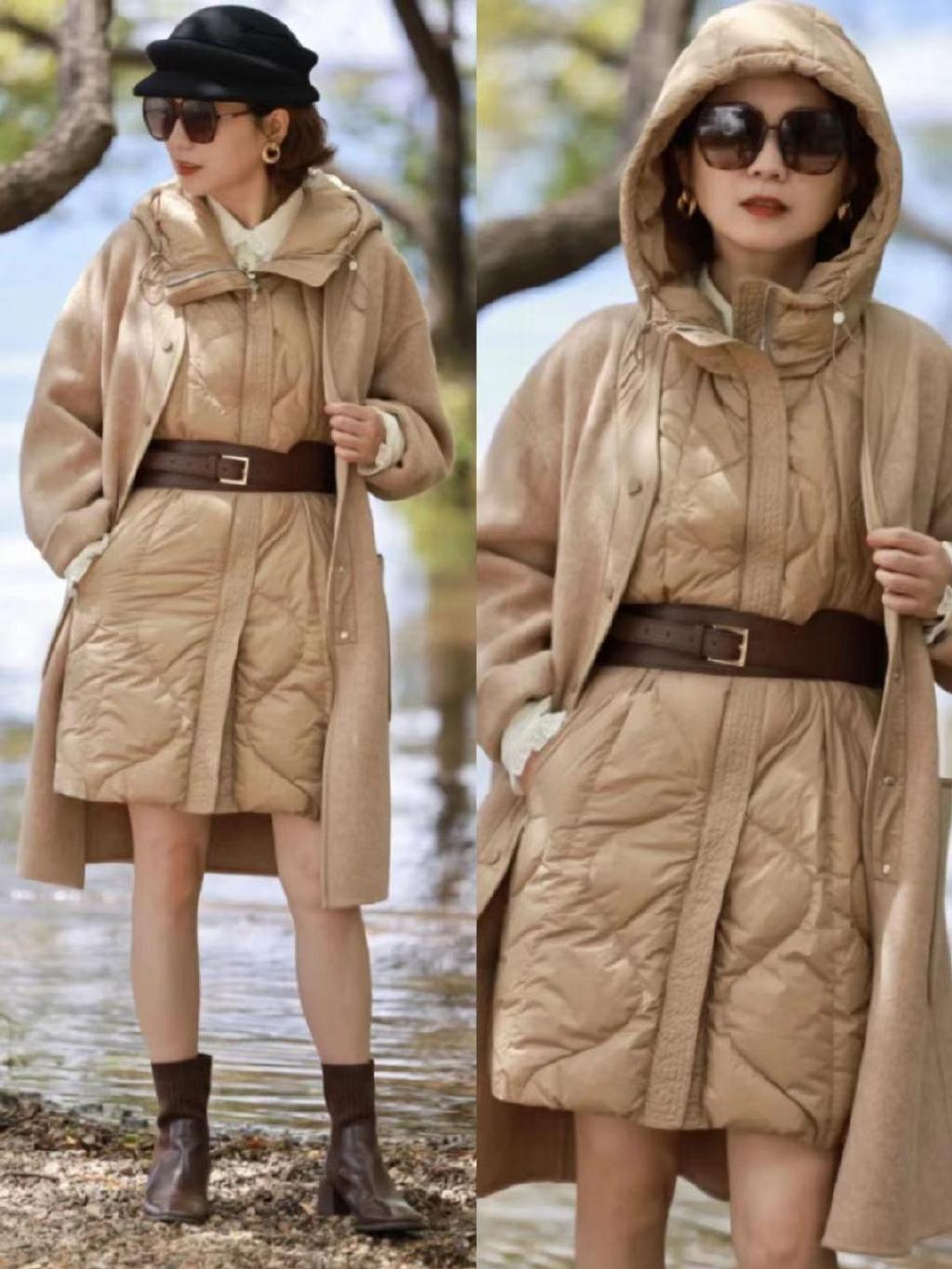 选取款式简洁且采用单一颜色的羽绒服,保暖实用又不易出错,比如米色羽绒服、驼色羽绒服、奶茶色系羽绒服或者黑色羽绒服。这些羽绒服无论是短款还是中款、长款,都可以通过搭配短靴,赢得时髦优雅的形象。