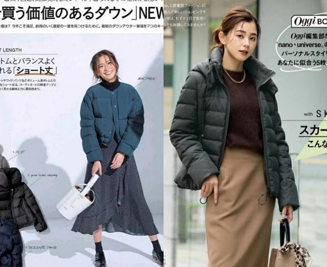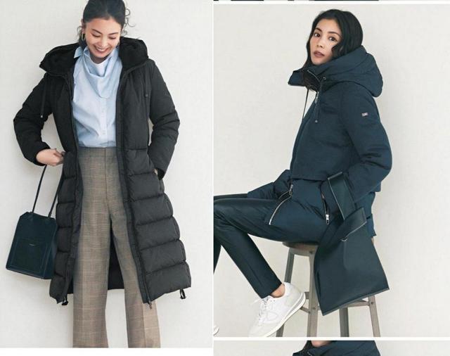 羽绒服都不是特别宽大的类型,左边修身一点,右边则具备抽绳来压缩出一个美观的弧度,这两类羽绒服都具备纯色该有的好搭的特征,看起来也十分时髦。