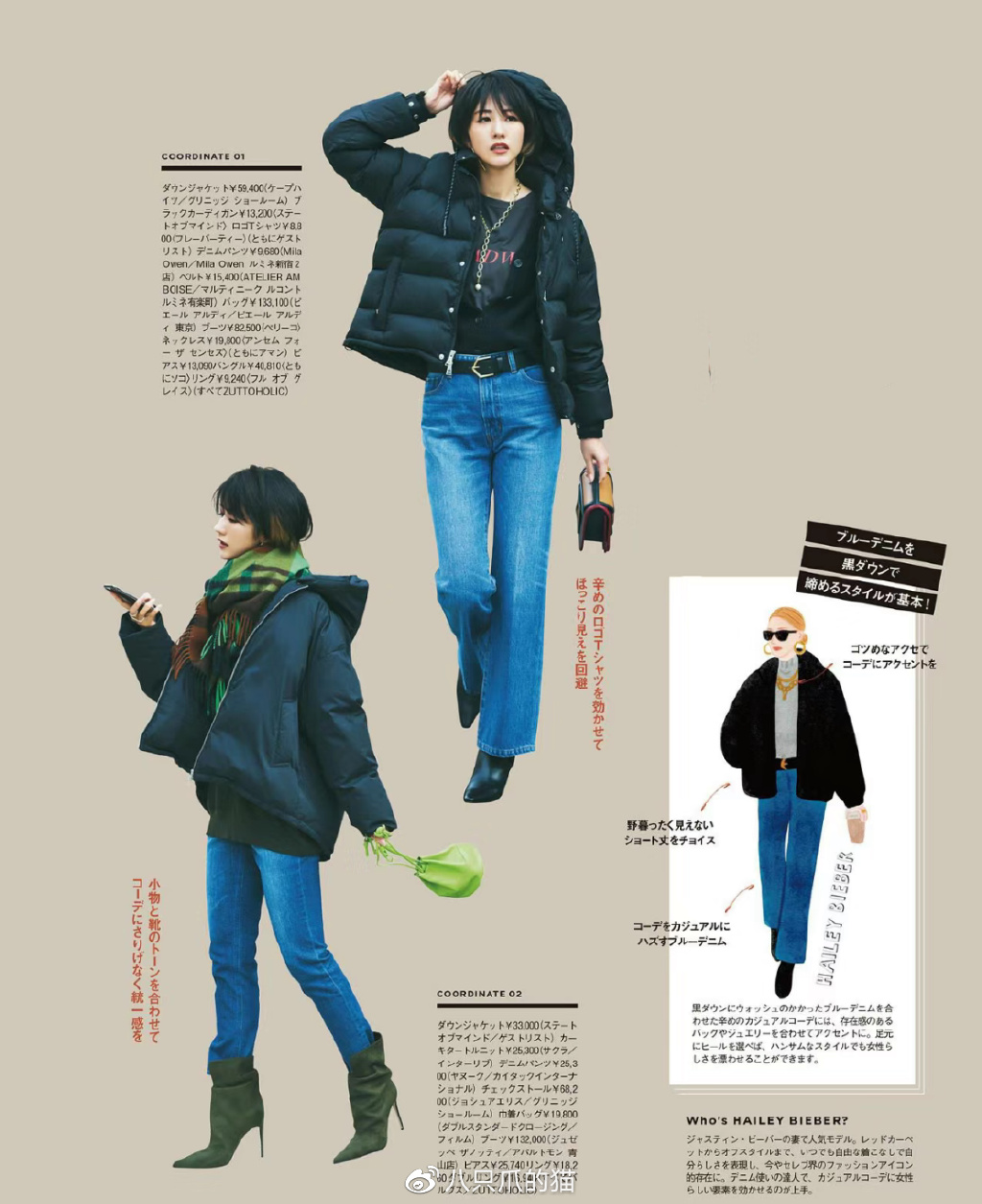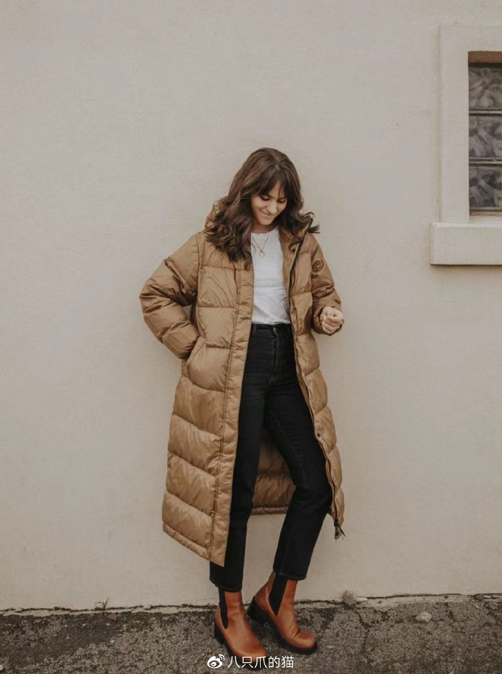 二、羽绒服+直筒裤的搭配,加点细节更好看