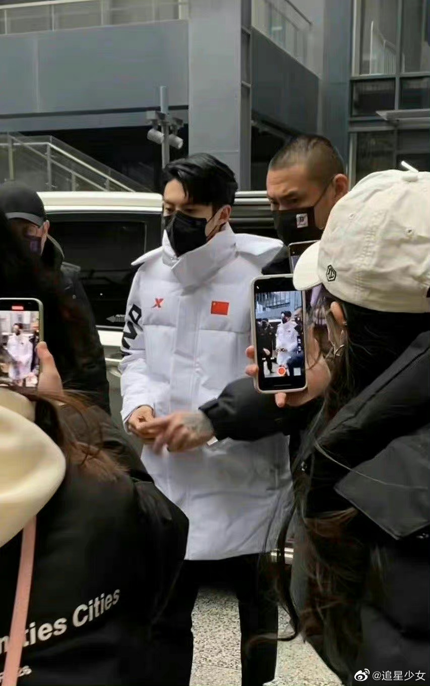 #王鹤棣网络视听盛典上班饭拍图##王鹤棣网络视听盛典白色羽绒服上班路透#