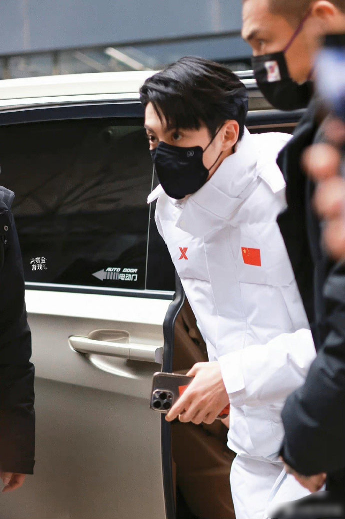 王鹤棣网络视听盛典上班路透,身穿白色羽绒服,河堤好帅!河堤的状态很棒!