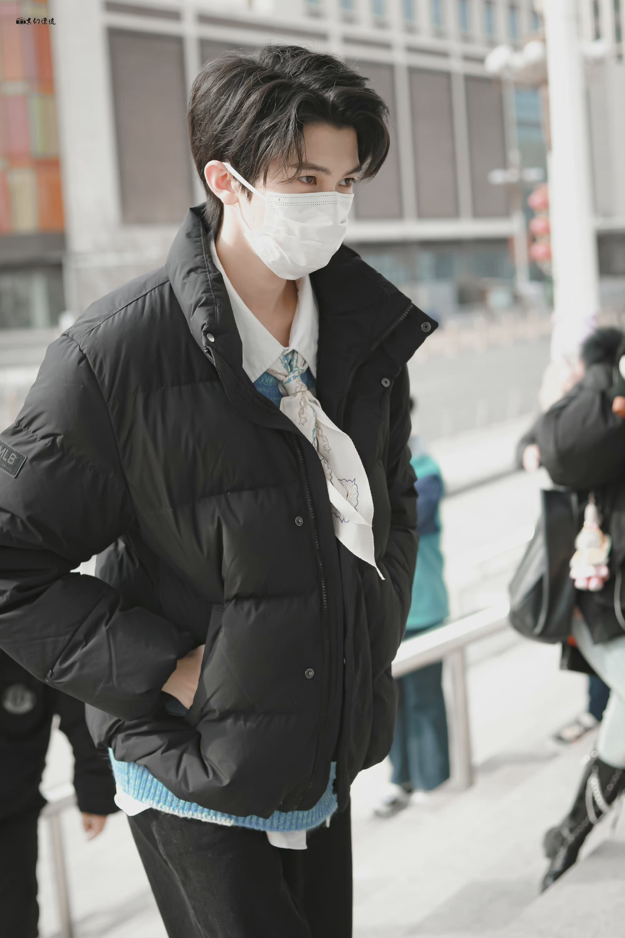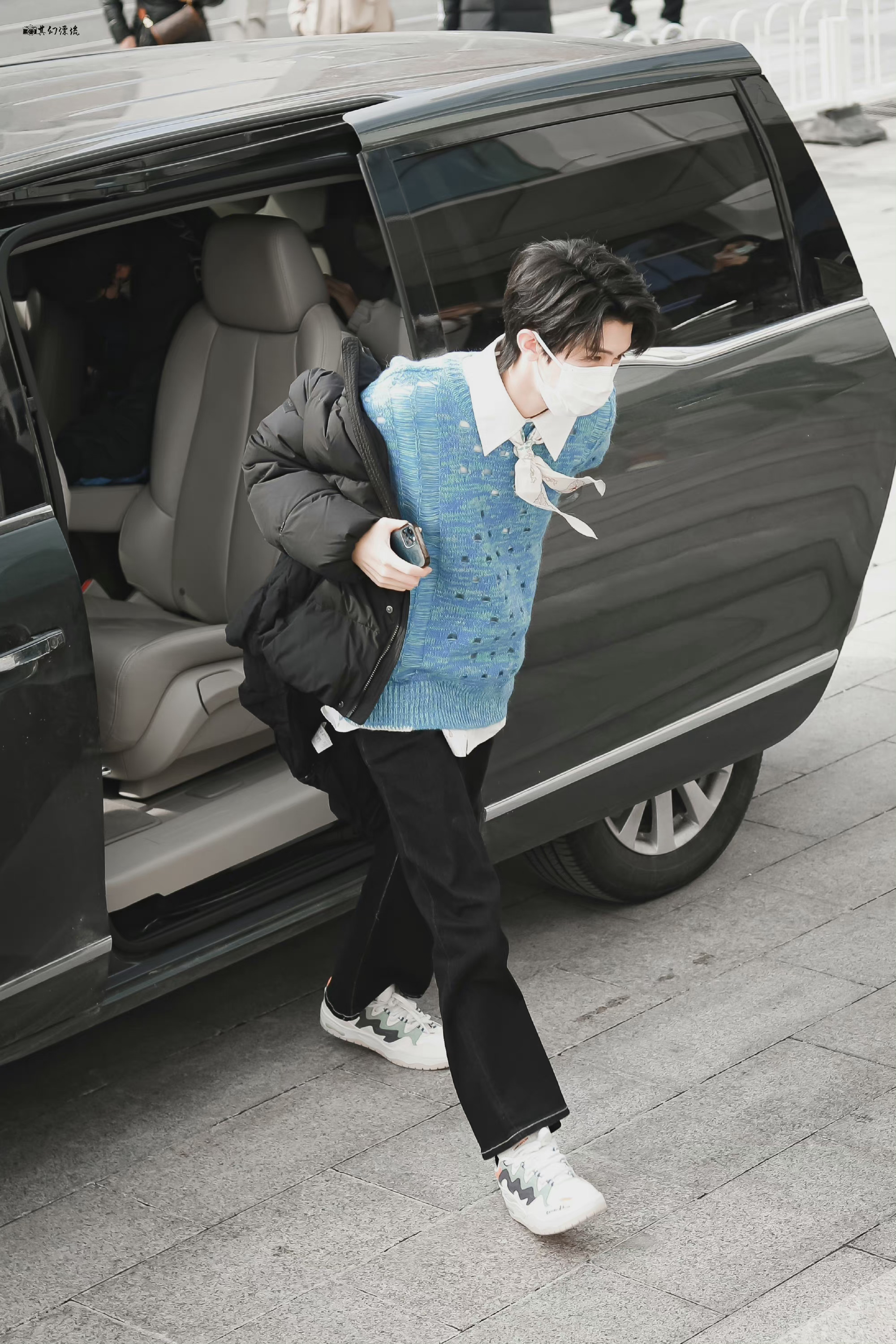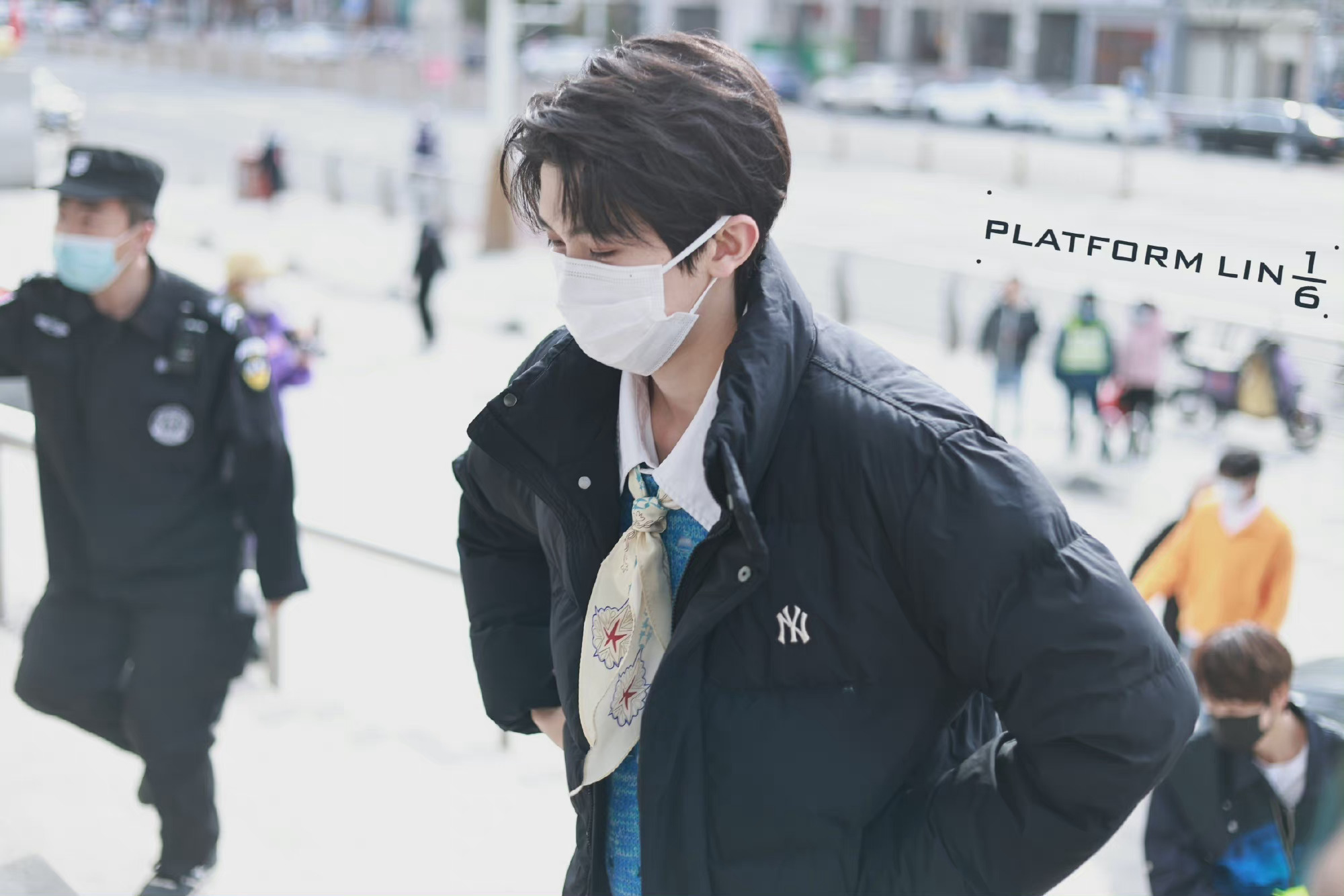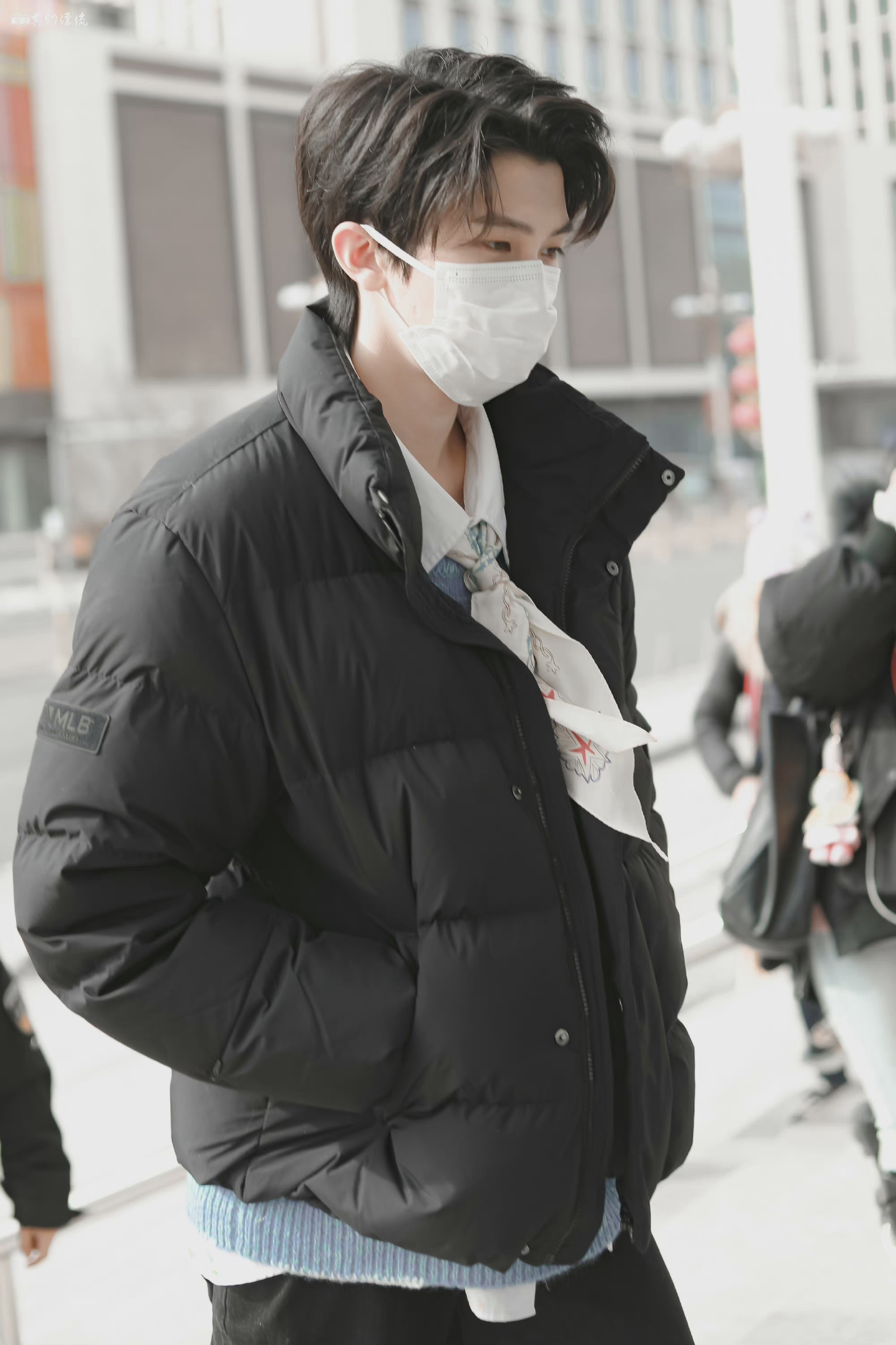 羽绒服+蓝色毛衣+丝巾,清爽元气[憧憬][憧憬]@INTO1-林墨
