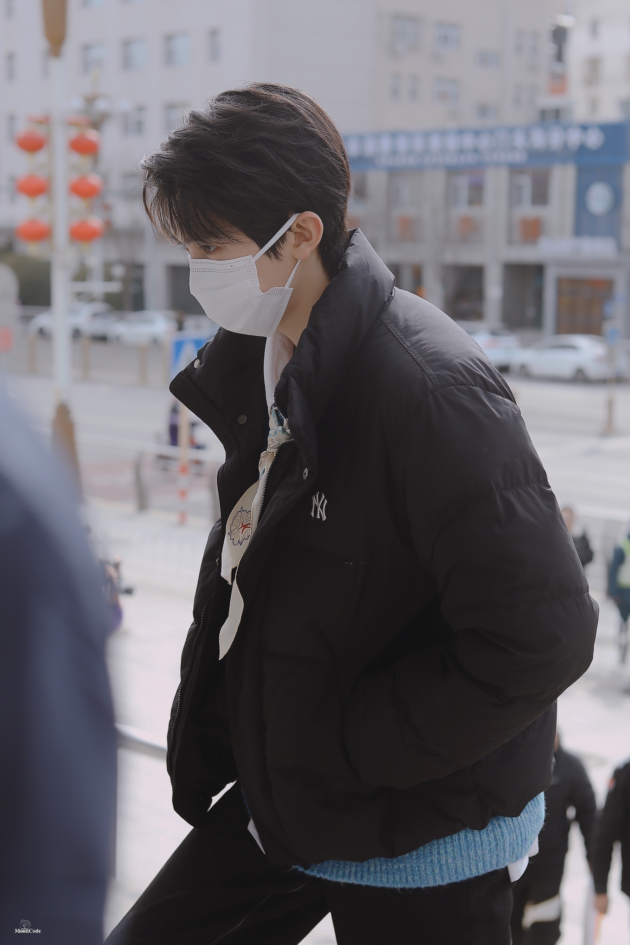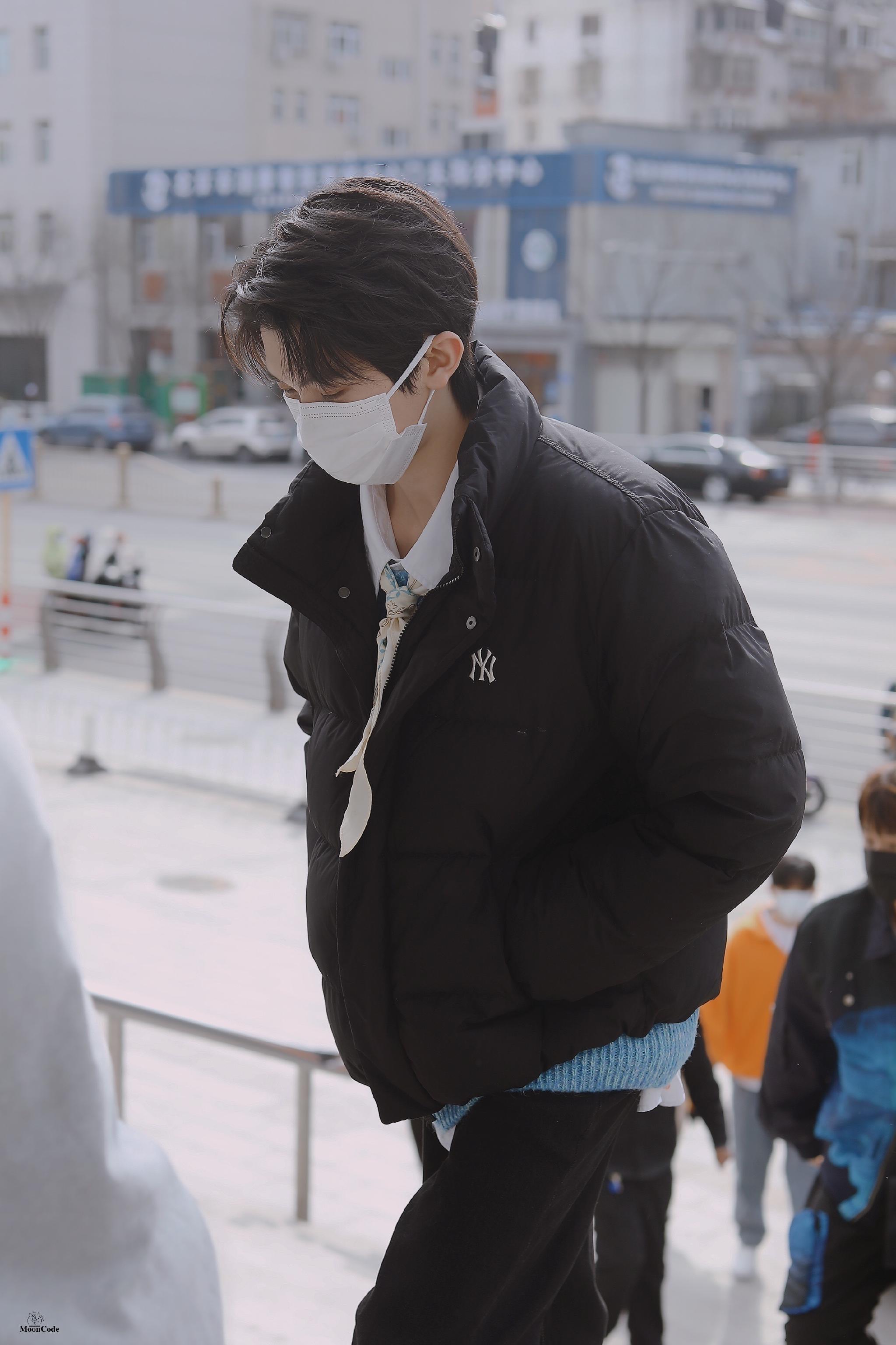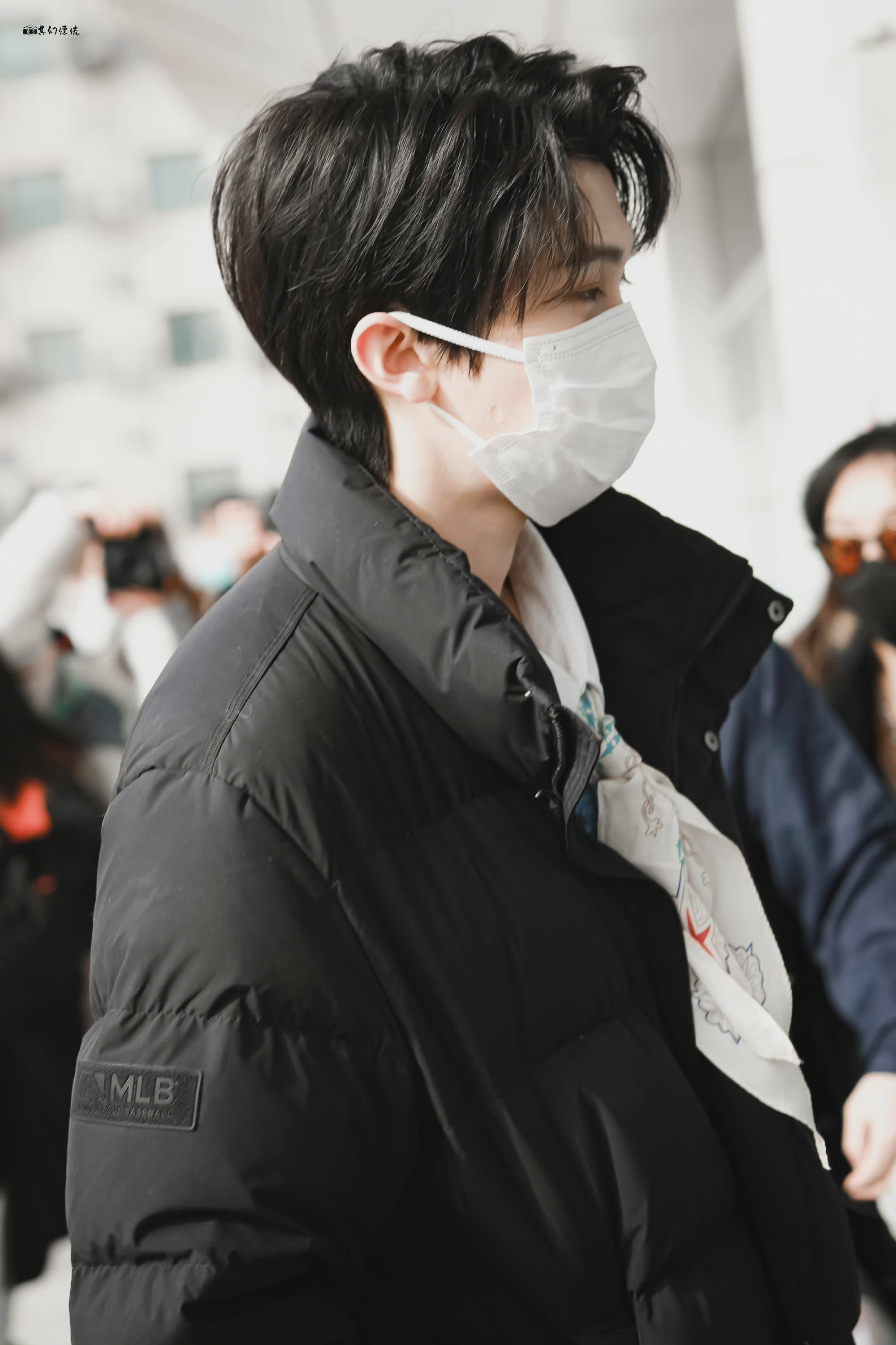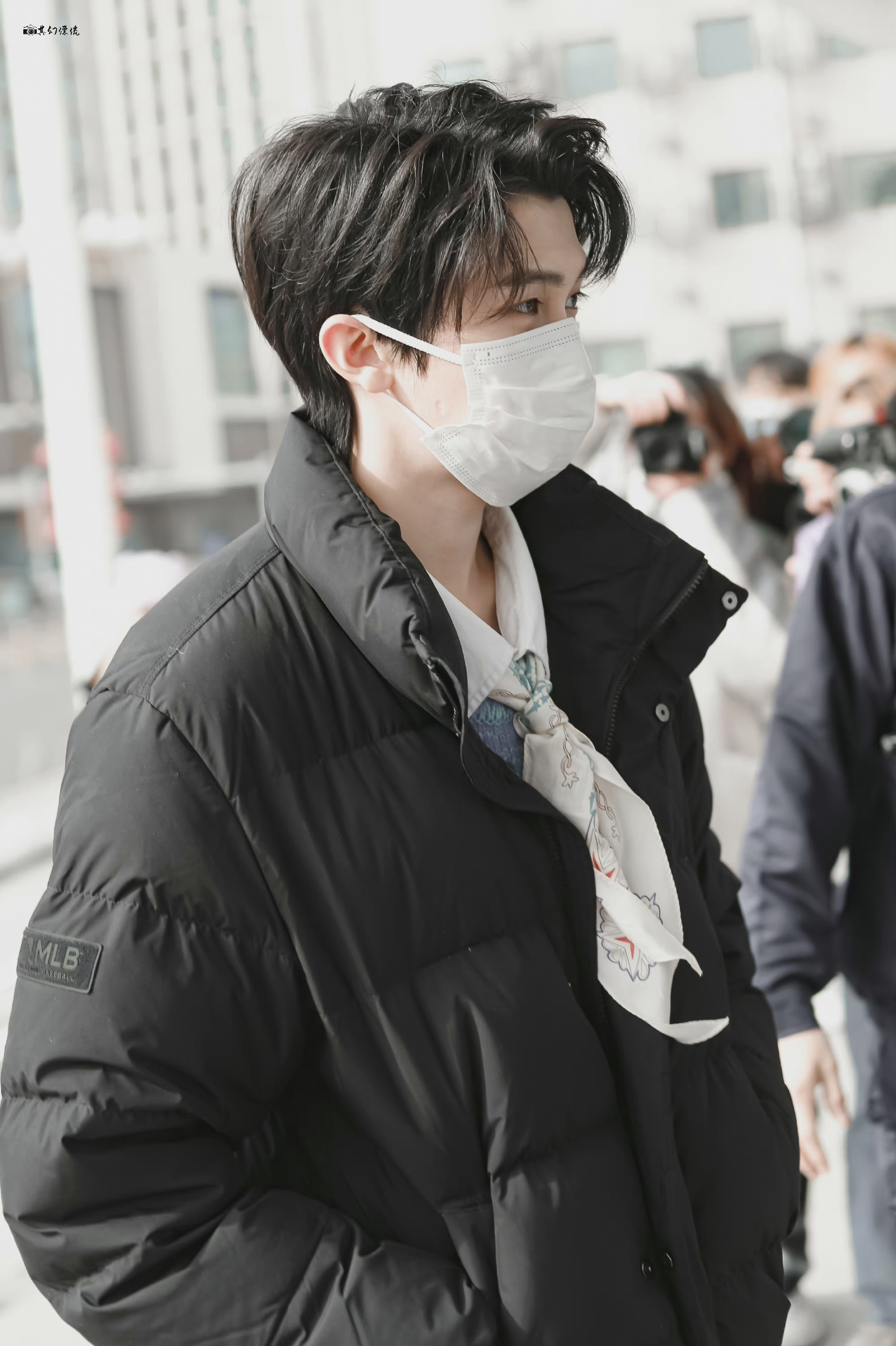 羽绒服+蓝色毛衣+丝巾,清爽元气[憧憬][憧憬]@INTO1-林墨