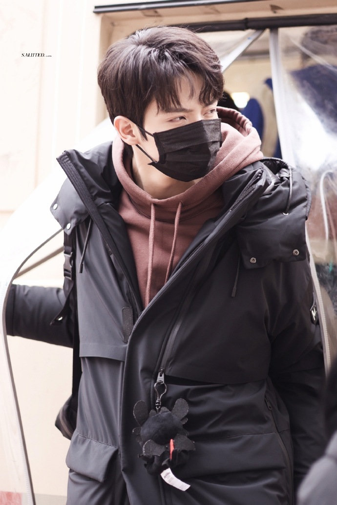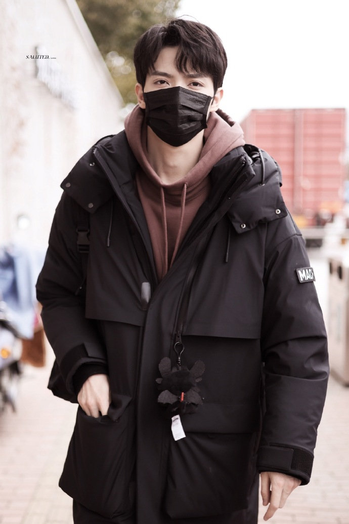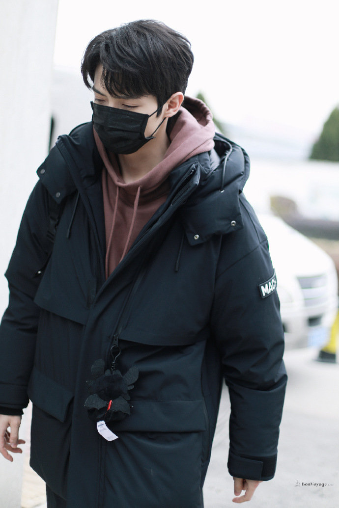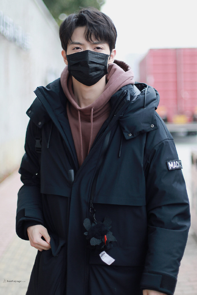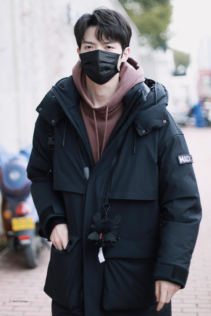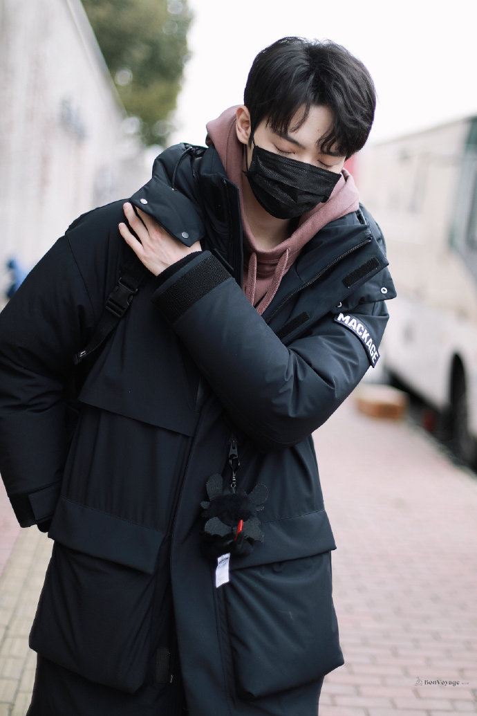 暗红色卫衣+黑色羽绒服,休闲帅气,背着书包又好可爱呀, 困困的小船上班啦~@IXFORM-罗一舟