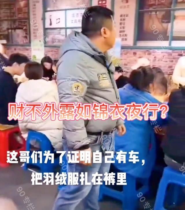 大哥钥匙挂腰前、羽绒服塞裤里的行为无时无刻都在向人诉说着“我很有钱”这句话。