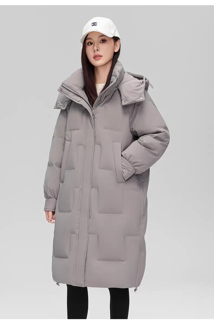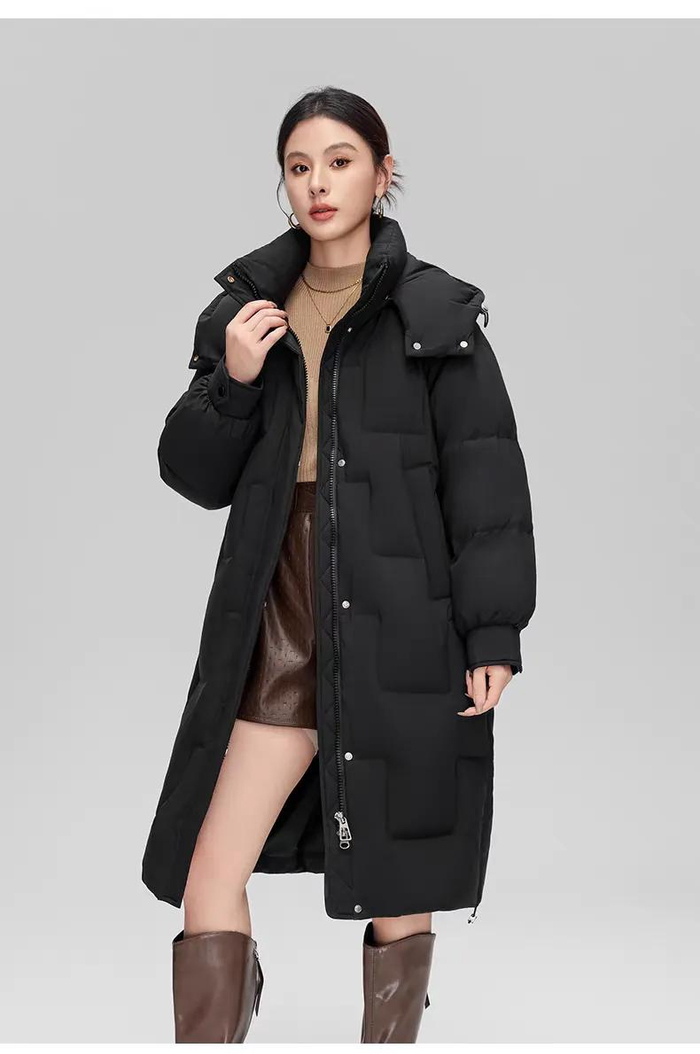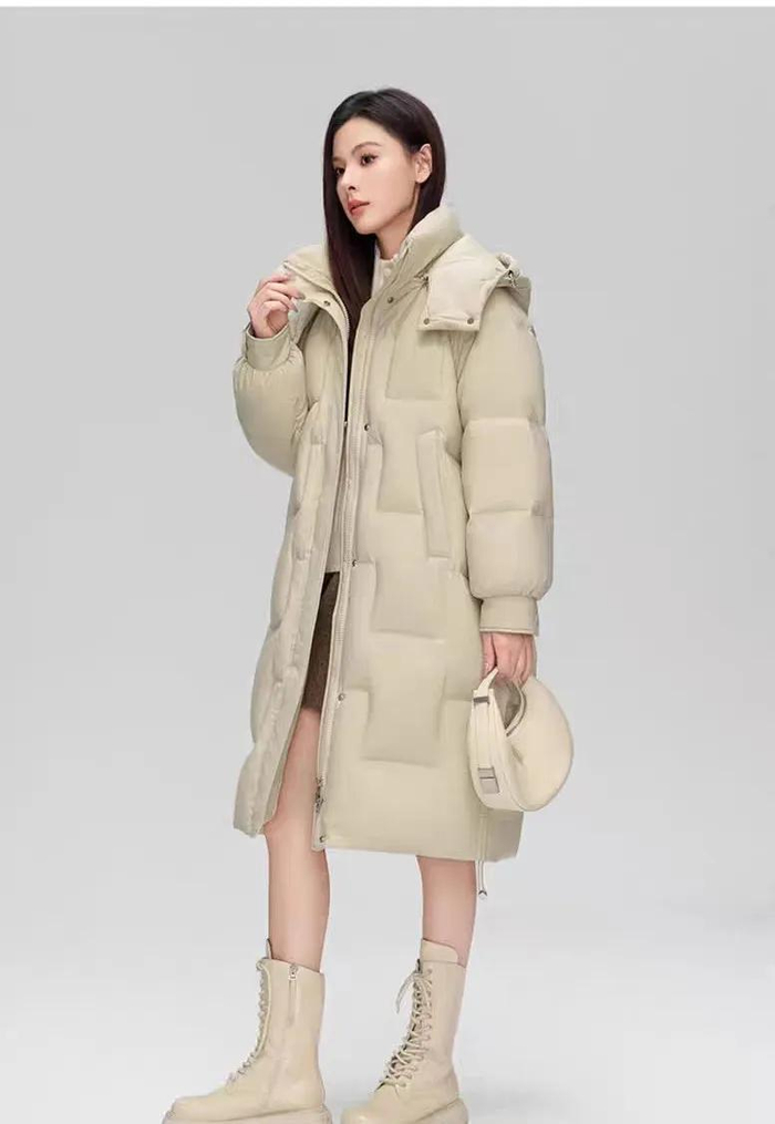 🟠 女士方格绗缝纹长款羽绒服