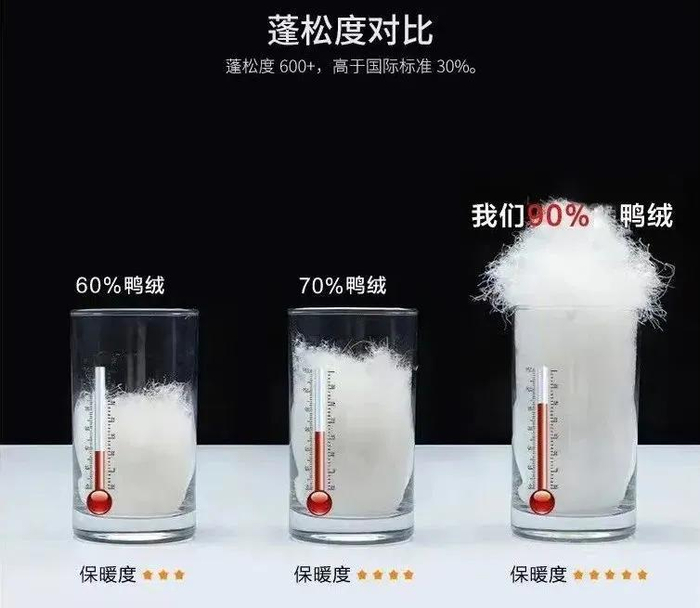 需要关注的无非就是填充物、含绒量、充绒量。