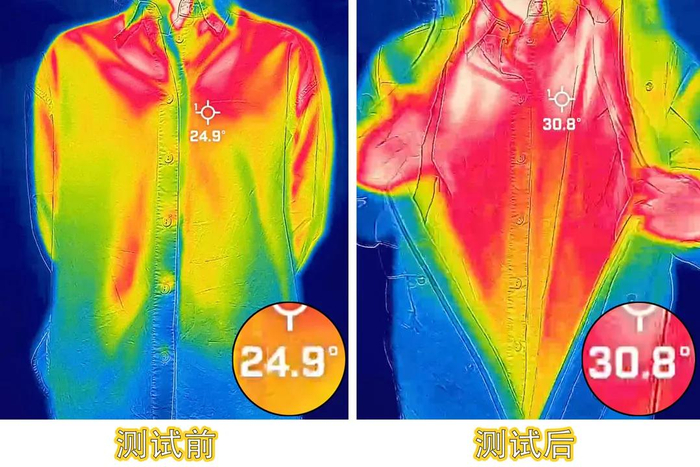 ·素湃抗寒服:温度20.5℃,升温约24.5℃;