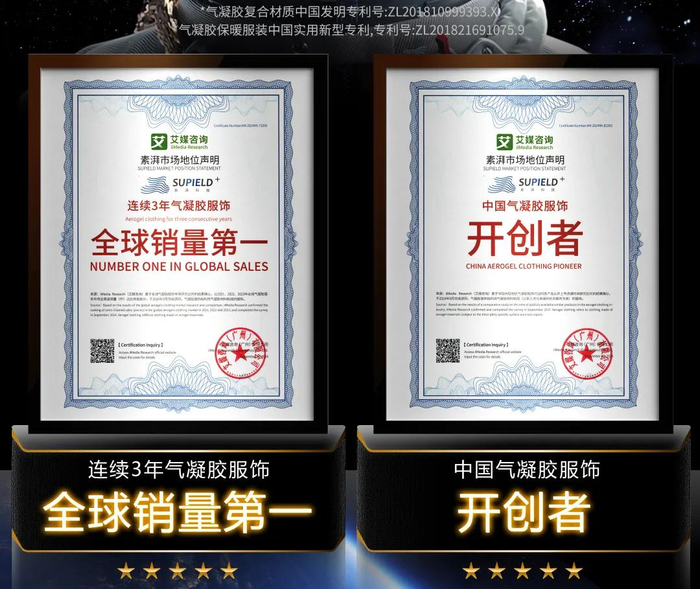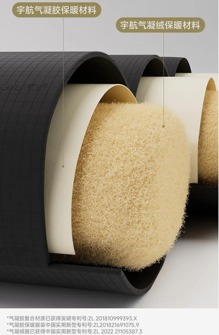 1、NASA航天局「御用」技术:气凝胶+气凝绒专利、实验室检测认证保暖性比羽绒服高8.9%,寒冬无惧风雪