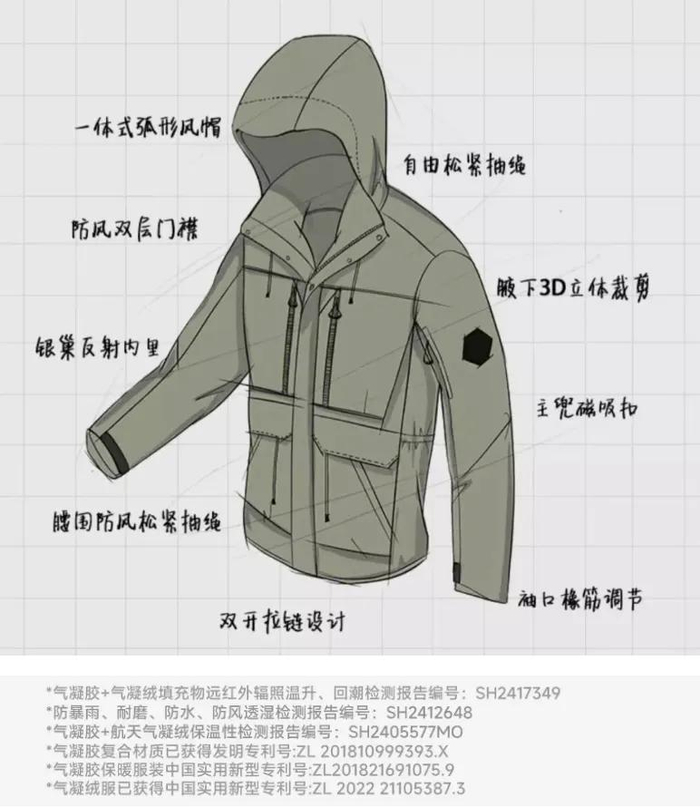 填充宇航气凝胶+气凝绒复合抗寒保暖材料+外层防风防暴雨抗寒服,buff叠满轻松拿捏各种寒冷天气