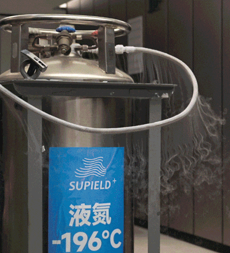 最后液氮瓶的管道、还有我的后背...都冻的结霜了!然而我人好好的!
