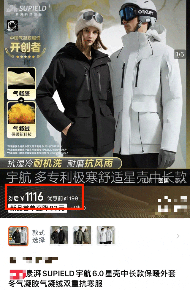 △ 素湃了不起碾压黑金羽绒服的素湃抗寒服,短/中/长款官网价格冲到了609元、1116元、1499元