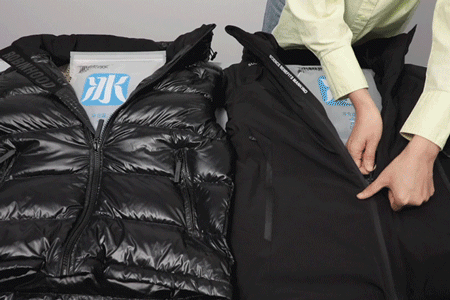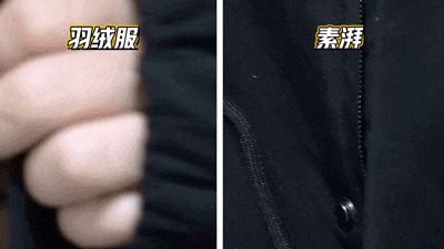 △ 左:品牌羽绒服;右:素湃抗寒服两位测试人员在-18度的冷库里冷冻20分钟后,同时拉开外套。