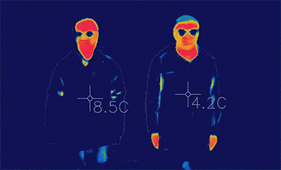 穿上素湃星壳抗寒服之后,10分钟之内升温了近6°C,我一个体寒的人都呼呼浑身冒热汗