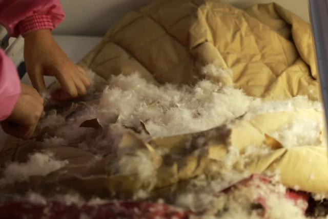 陆师傅发现,在拆解旧羽绒服改做被子时,不少羽绒服内部填充物大多是断裂的羽绒,这说明清洗和收纳方式损伤了绒朵结构,导致保暖性下降。