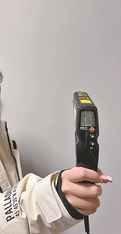 19日9时许,记者来到韩女士家,虽然当天的气温已升到4℃,可一进屋明显感到一股凉意,韩女士穿着厚厚的羽绒服。此时室温是多少呢?记者用专业测温仪实时测温,结果显示16.7℃。“晚上室温更低,家里的温度计显示不到15℃。”韩女士告诉记者,小区已经入户五年了,只有第一年冬天室温达标,之后就一直不达标,已经四年了。为了睡觉不冷,每个卧室都用电暖器取暖。